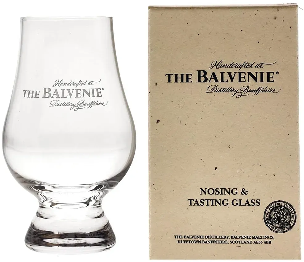 Verfügbarkeit: Auf Lager - Kategorie: Gläser - IMPERIAL glass - GTIN:4250906720816 - Details: Länge / Breite: 5,9cm - Höhe: 15,4cm - Durchmesser: 4cm - Gesamtvolumen: 110ml - Füllempfehlung: 50ml - 2 Stück - Material: Crystalline Glas - Gewicht: 98g pro Stück - Leichtes Degustationsglas für maximalen Genuss edler Tropfen Hochwertiges Verkostungsglas mit schlankem Stiel in eleganter Tulpenform - ideal für sensorische Whiskyverkostungen mit intensivem Aromaerlebnis Vielseitig einsetzbar als Verkostungsgläser für Whisky, Cognac, Brandy, Rum oder Gin - perfekte Glaswahl für Genießer und Profis Crystalline Glas - besonders klar, bruchfest, langlebig und bleifreies Glas, spülmaschinenfest für komfortable Reinigung - ideal für Gastronomie, Tastings und Sammlungen Europäische Fertigung mit Fokus auf Qualität & Funktion - stilvolles Präsentationsglas für Events, Seminare oder Geschenksets - 14,90 Euro bei Amazon Marketplace Home - gefunden von billiger.de Ein klassisches Glencairn Glas mit Markenaufdruck, perfekt für Liebhaber der Marke THE BALVENIE. ![]() ![]() THE BALVENIE Glencairn Glas - Whisky Nosing / Tasting Glas mit Aufdruck