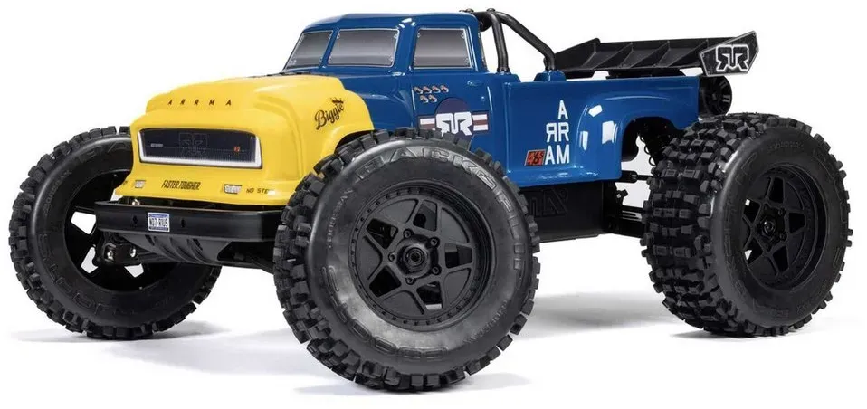 2 Händlerangebote bei billiger.de - Kategorie: RC-Modellbau - Arrma - ARRMA Notorious 6S V6 BLX 4x4 Stunt Truck - Blau - Maßstab 1:8 - Brushless, Extreme Stunts & Bashing DerARRMA Notorious 6S BLX 4x4 ist ein echterStunt-Truck im Maßstab1:8, der mit seinem außergewöhnlichen Design und extrem robusten Komponenten für spektakuläreStunts und anspruchsvollesBashing auf jedem Terrain ausgelegt ist. Mit seinem leistungsstarkenSpektrum 6S Brushless-System bietet er eine unglaubliche Power, die es dir ermöglicht,Wheelies,Backflips, enge Donuts und noch viel mehr zu meistern. DerNotorious 6S BLX liefert die perfekte Mischung ausExtremhaltbarkeit,Performance undDesign - ideal für ambitionierte RC-Enthusiasten. Hauptmerkmale des Notorious 6S BLX 4x4 Stunt-Trucks: EXB-Upgrades für extreme Haltbarkeit: Robustes7075 T6 Aluminium-Chassis, verstärkteDifferenziale undFrontstoßstange, damit du härteste Bashing-Sessions problemlos überstehst. Beeindruckendes Retro-Design: Karosserie im Stil der1950er Jahre mit einer einzigartigenWWII-Flugzeug-Lackierung, kombiniert mit einem praktischenClipless-Karosseriehaltesystem. Anpassbare Leistung: Fahre mit einem4S-Akku für kontrollierte Power oder steig auf den6S LiPo-Akku um, um die komplette Geschwindigkeit und Stunt-Power freizusetzen. Vielseitige Geländetauglichkeit: Ausgestattet mitdBoots Backflip-Reifen undeinstellbaren ölstoßdämpfern für herausragende Leistung auf Asphalt, Gras, Schotter und mehr. Im Lieferumfang enthalten: Notorious 6S BLX 4x4 ... Der ARRMA 1/8 Notorious 6S 4X4 RTR Brushless Stunt Truck in Blau ist eine ausgezeichnete Wahl für alle, die ein sofort einsatzbereites und leistungsstarkes Modell suchen. ![]() ![]() ARRMA 1/8 Notorious 6S 4X4 RTR Brushless Stunt Truck, Blue