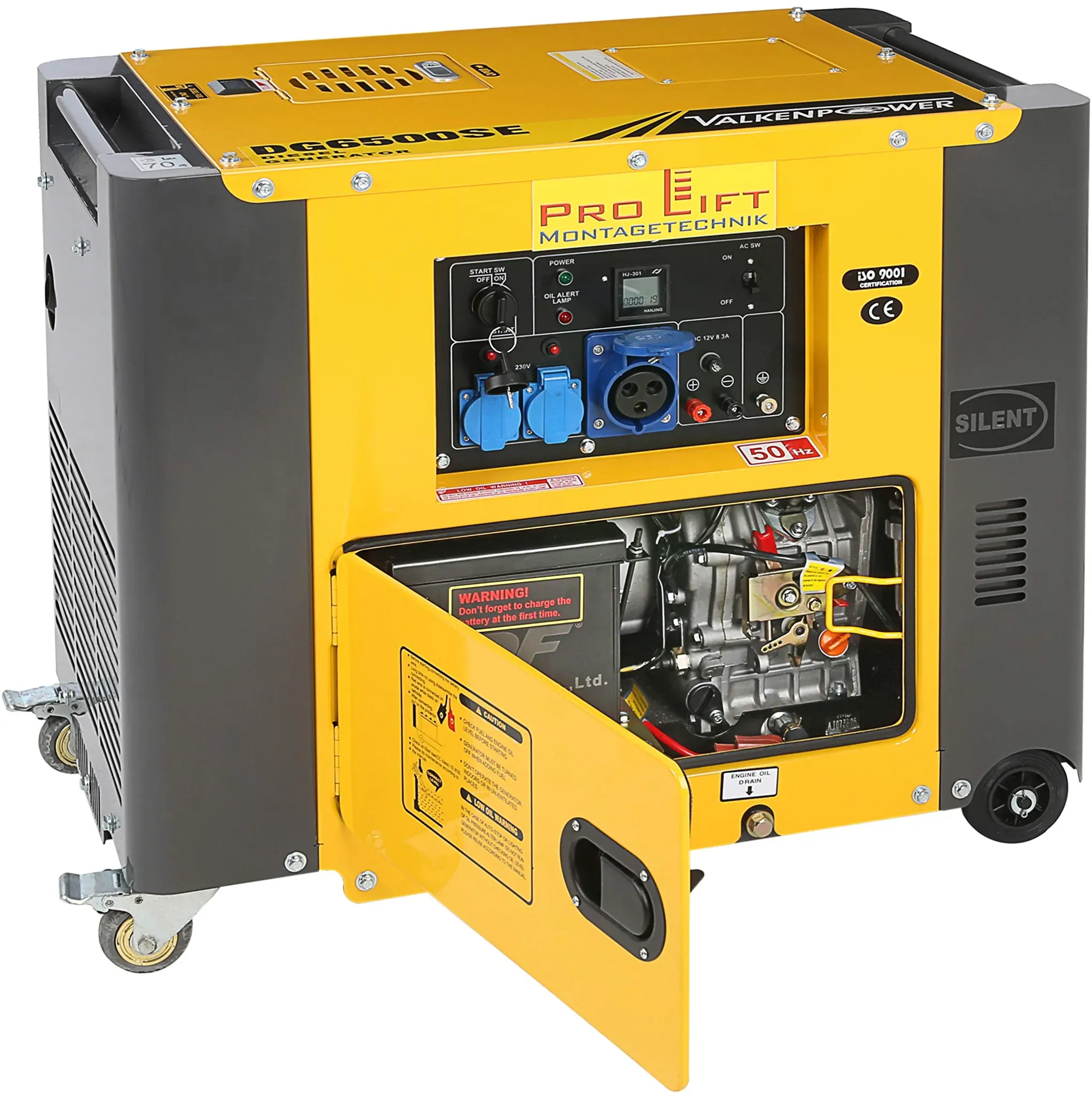 Generatoren Werkzeug Werkstatteinrichtung & Werkstattzubehör Stromerzeuger & Zubehör Stromerzeuger Elektrowerkzeuge - EAN:5453002967676 - Funktionen und Vorteile Hohe Zuverlässigkeit und optimale Leistung Elektrostarter Starterbatterie enthalten Stabiler Rahmen, leicht zu lagern Großer Behälter für lange Laufzeit (bis 7,3 Stunden) Warnsignal bei Ölmangel Voltmeter Temperaturüberwachung AVR zur regulierung von stabiler Spannung Auf Rädern 3 verschiedene Ausgänge: 400V, 230V und 12V Zertifikate: CE, EC-II, GS, TÜV Dieser Generator wird Ihnen vielfältige Dienste leisten, sei es auf der Baustelle, bei einer Party, Feuerwerken, auf einem Karnevalswagen oder anderen Anwendungsmöglichkeiten. Technische Produktbeschreibung Kraftstoff: Diesel Marke: Varan Motors Frequenz: 50Hz Kontinuierliche Leistung: 5000kVa (bei 230V: 2600W = 1300W pro Steckdose) Max. Leistung: 5500kVa Spannung: 230VAC + 400VAC + 12V Motor: UP186 4-Takt OHV, luftgekühlt Hubraum: 418cm³ Drehzahl: 3000 U/min Max. Kraft: 7,4kW / 10PS bei 3000 U/min Elektrostarter Motoröl: SAE 10W30 Sommer / Winter Tankinhalt: 16L Laufzeit bei vollem Tank: max. 7,3 Stunden - gefunden von Kelkoo Das Pro-Lift-Montagetechnik Silent Aggregat bietet 5,5 kW Leistung und ist dank seiner Rollen mobil und leise im Betrieb. ![]() ![]() Pro-Lift-Montagetechnik Stromerzeuger Silent Diesel Generator Aggregat 5,5kW 230V E-Starter Notstromaggregat 5500W luftgekühlt Stromgenerator Rollen