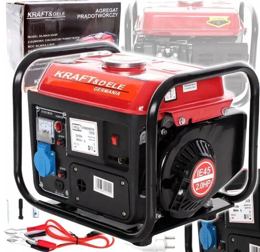 Kategorie: Generatoren - KRAFT&DELE - GTIN:5901638113689 - Technische DatenModell: 109NAuf stoßdämpfenden Kissen montiert: jaMaterialien: Edelstahl, Aluminium, KunststoffKraftstoff: Benzingemisch (50:1 öl für 2-Takt-Motoren)Fassungsvermögen des Kraftstofftanks: 4 lStart: manuellKraftstoffstandanzeige: jaVoltmeter: jaNennleistung des Generators: 800W / 0,8 kWMaximale Leistung des Generators: 1200 W / 1,2 kWMotorleistung: 1500 W / 2 PSFrequenz: 50 HzErzeugter Strom: 230V / 12VAnzahl der Steckdosen: 1x 230V / 1x 12VMotor: luftgekühlter 2-Takt-MotorGeräuschpegel: 68 dBGerätetyp: einphasigAbmessungen: 380x320x330mm Der Generator eignet sich perfekt für Baustellen, Häuser, Sommerhäuser, Campingplätze und überall dort, wo wir eine zuverlässige Stromquelle benötigen. Der Motor des Geräts verfügt über einen verchromten Kolben und zeichnet sich daher durch einen leisen und reibungslosen Betrieb aus und ist gleichzeitig sehr sparsam.Der tragbare Einphasengenerator mit der Bezeichnung KD109N von Kraft&Dele ist für die Erzeugung von Wechselstrom 220V-230V mit einem japanischen OHV-Zweitakt-Verbrennungsmotor mit einer Leistung von 2 PS und einer maximalen Generatorleistung von 1200 W ausgelegtGummistabilisatoren und Motorlager des Geräts sorgen für Vibrationsdämpfung und Geräuschminimierung. Das Gerät ist mit einem Voltmeter und einem 12-V-Ausgang zum Laden der Batterie ausgestattet.PAKETINHALT:1x KD109 Generator1x Kerzenschlüssel1x Schraubendreher1x Batterieladekabel1x Stecker 1x 230V ... Ein sehr günstiger Inverter-Stromerzeuger, der sich durch seine leise Arbeitsweise und kompakte Bauweise auszeichnet. ![]() ![]() Matrix Notstromaggregat Benzin leise Generator Inverter Stromerzeuger Benzin Stromaggregat tragbar Stromgenerator silent IG 2000i | 2000 Watt | 4 T...