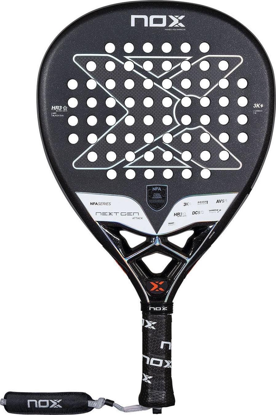 EAN: 8435778900597 - Dominiere den Court mit dem NOX Nextgen Pro Attack 3K 2025 Padelschläger Entfessle deinen aggressiven Spielstil und beherrsche das Spiel mit dem NOX Nextgen Pro Attack 3K 2025 Padelschläger. Dieser diamantförmige Schläger wurde für Halbprofispieler entwickelt, die maximale Power ohne Kompromisse bei der Kontrolle suchen, und bietet außergewöhnliche Leistung bei jedem Schlag. Der Nextgen Pro Attack 3K 2025 verfügt über eine Reihe modernster Technologien, die entwickelt wurden, um dein Spiel zu verbessern: 3K-Kohlefaser-Oberfläche: Erlebe unvergleichliche Power und Haltbarkeit mit der hochfesten 3K-Kohlefaser-Oberfläche. Diese robuste Konstruktion sorgt für explosive Schläge und lang anhaltende Leistung. HR3-Kern: Der hochdichte HR3-Kern bietet außergewöhnliches Ballfeedback und Kontrolle, sodass du deine Schläge punktgenau platzieren kannst. Raue Oberfläche: Die strukturierte Oberfläche erhöht das Spinpotenzial und ermöglicht es dir, aggressive Schläge mit verheerender Wirkung auszuführen. Smartstrap -Technologie: Genieße persönlichen Komfort und Hygiene mit dem innovativen, austauschbaren Sicherheitssystem für Tragegurte. Tausche dein Armband ganz einfach gegen eine individuelle Passform und Haptik aus. Technische Spezifikationen: Gewicht: 360-375 Gramm Balance: Kopflastig Rahmen: 100 % Carbonrahmen Oberfläche: 3K-Kohlefaser Kern: HR3 High Density EVA Form: Diamant Spielerlevel: Halbprofi Spielstil: Angriff Geschlecht: Unisex Der NOX Nextgen Pro Attack ... ![]() ![]() NOX Nextgen Pro Hybrid 3k 2025