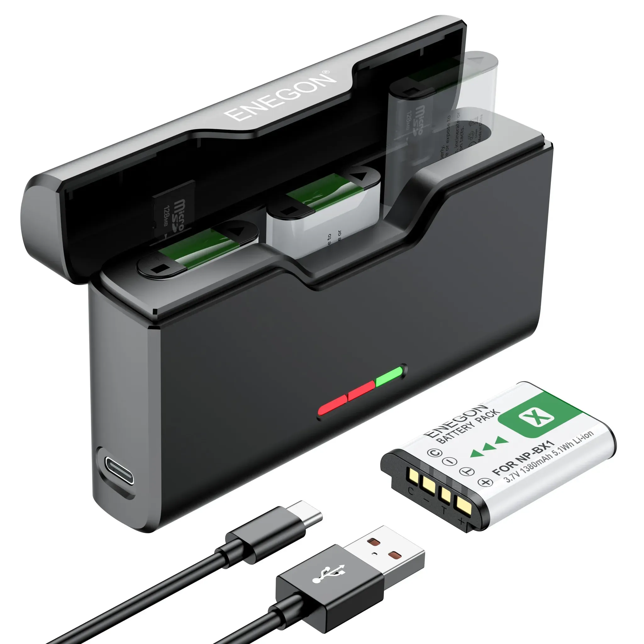Verfügbarkeit: Auf Lager - Kategorie: Kamera Ladegeräte - ENEGON - GTIN:0721295879156 - Perfekt kompatibel mit Sony KamerasENEGON NP-BX1 Akku-Ladekit ist kompatibel mit einer Vielzahl von Kameras für ZV-1, ZV-1 II, Cyber-Shot DSC-RX100, DSC-RX100 VII/VI/V/IV/III/II/VA (M2/M3/M4/M5/M6/M7), HDR-CX405, FDR-X3000, HX300 und andere Sony-Kameras, die NP-BX1-Akkus verwenden, ideal für professionelle Fotografen und Fotoenthusiasten. Mehrkanaliges Laden, kein Warten mehrMit so vielen Akkus muss man oft darauf achten, sie einzeln aufzuladen! Dieses 3-Kanal Ladegerät kann gleichzeitig drei 1380mAh NP-BX1-Akkus aufladen. Es reduziert die Ladezeit, ohne dass eine Pause zum Warten notwendig ist! Portables AufbewahrungsdesignBesorgst du dich, dass NP-BX1-Akkus und microSD-Karten in deinem Rucksack durcheinander geraten? Probier das ENEGON aufbewahrende Ladegerät speziell für NP-BX1 entwickelt! Flach und kompakt, fasst es bis zu 3 Akkus und 2 microSD-Karten. Im Gegensatz zu quadratischen Modellen passt es ideal in deine Tasche bequem und flach. Ein toller NP-BX1-Organizer, um deinen Rucksack aufgeräumt zu halten. LED-Anzeige für den AkkustatusDas NP-BX1 Akku-Aufbewahrungsetui hat einen eingebauten Ladeanschluss an der Seite für deinen Komfort. Die LED-Anzeige informiert dich über den Ladezustand. Der magnetische Deckel lässt sich glatt öffnen und schließen, um den Akku zu schützen. Sicher und zuverlässigDas Ladegerät verfügt über ein ... Der SONY NP-BX1 Akku von digitfoto.de ist eine gute Wahl für Nutzer, die ein Originalprodukt zu einem fairen Preis suchen. ![]() ![]() SONY NP-BX1 Akku (RX100/RX1...)