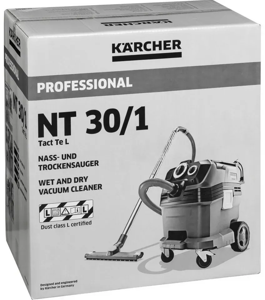 Auf Lager Versand durch AmazonKärcher Nass- und Trockensauger NT 30/1 Tact L, Leistung: max. 1380 W, Flachfaltenfilter, Kunststoffbehälter: 30 l, Saugschlauch: 2,5 m, Krümmer, breite Nass-/Trockenbodendüse (360 mm), Fugendüse