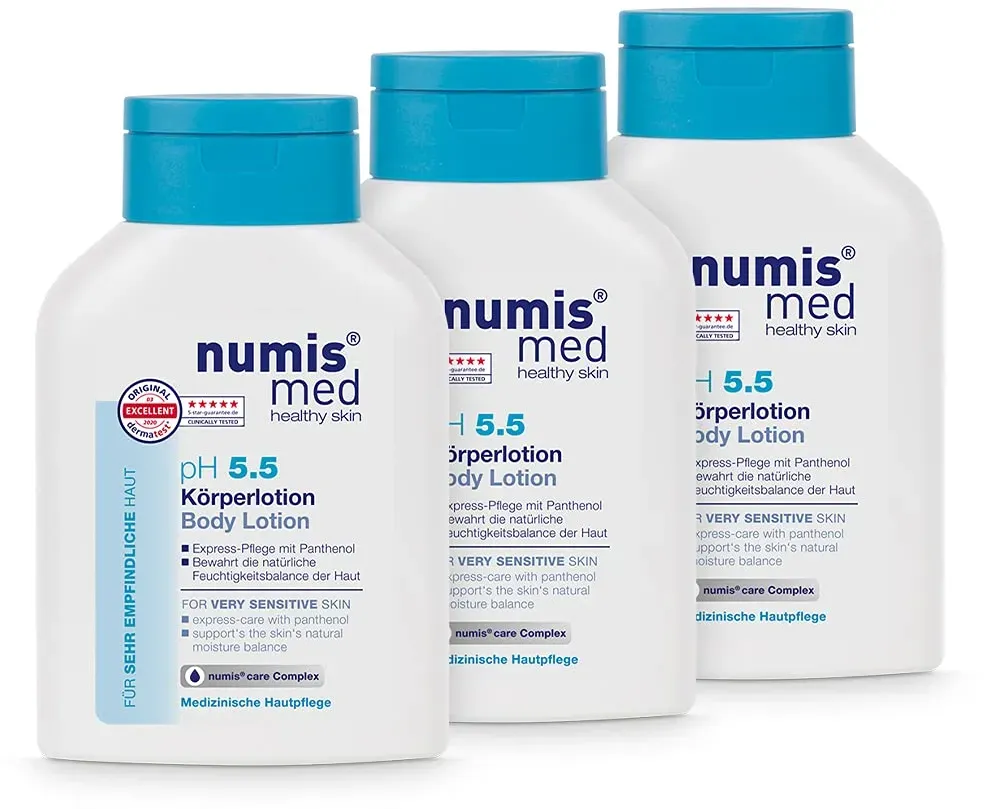Kategorie: Handpflege - Numis med - GTIN:4003583130399 - EFFEKTIVE FORMEL pflegt und schützt sehr trockene und strapazierte Hände langanhaltend - Für spürbar glatte, geschmeidige Hände WIRKSAME PFLEGE - Dank der Formel mit 10% Urea Anteil & numis care Complex spendet die Handcreme Feuchtigkeit und mindert das Spannungsgefühl extrem trockener und strapazierter Hände DERMATOLOGISCHE PRüFUNGEN belegen sehr gute Hautverträglichkeit - Zudem ist die Handcreme ausgezeichnet mit dem dermatest 5-Sterne Siegel, ist vegan und frei von Silikonen, Parabenen, PEG, SLS & Mineralöl NUMIS CARE COMPLEX mit Hydrolactol sowie hautberuhigenden Komponenten - Speziell entwickelt um empfindliche Haut zu pflegen und vor Austrocknung zu schützen LIEFERUNG enthält 3x 75ml numis med Handcreme mit 10% Urea - Hergestellt in Deutschland - Medizinische Hautpflege - 15,50 Euro bei Amazon Marketplace Beauty - gefunden von billiger.de Ein praktisches 3er-Pack Bodylotion für empfindliche Haut, das eine gute Vorratshaltung ermöglicht. ![]() ![]() numis med Bodylotion ph 5.5-3er Pack Hautberuhigende Körperlotion für sehr empfindliche & sensible Haut - vegane Hautpflege ohne Silikone, Parabene & Mineralöl - Lotion (3x 200 ml)