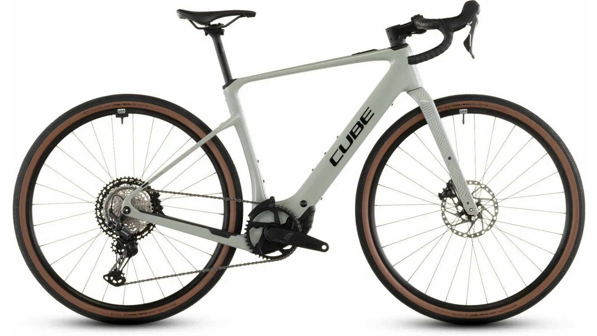 Kategorie: E-Bikes - Cube - GTIN:4054571500014 - Die cleane Linienführung des C:62 Carbonrahmens ist nur ein Highlight des Nuroad Hybrid C:62 Race, sein geringes Gewicht und seine Vielseitigkeit zwei weitere. Das Herzstück dieses Gravel-Powerhouse: der leichte SX Motor von Bosch, der bis zu 60 Nm Drehmoment zur Verfügung stellt und von einem 400 Wh starken Akku gespeist wird. Wer noch mehr Reichweite will und braucht, freut sich über die PowerMore-ready-Technologie zum Nachrüsten von weiteren 250 Wh. Für top Kontrolle und präzise übersetzung der Power auf den Boden sorgt die GRX 12-Gang Schaltung von Shimano, für sicheres Verzögern die passenden hydraulischen GRX Scheibenbremsen. Wenn 1a-Bodenhaftung und zugleich Speed gefragt sind, zeigen sich die Newmen Performance Gravel 25 Laufräder mit sensationell griffigen Schwalbe 45 mm Reifen von ihrer besten Seite. Wir haben sogar ein X-Connect Kabel für den supereinfachen Anschluss eines kompatiblen ACID Vorderlichts integriert. Das Bike steht bereit und jetzt kommst du! Form und Funktion in Vollendung: Mit seiner reduzierten Linienführung ist der superelegante Nuroad Hybrid C:62 Carbonrahmen nicht nur ein optisch ein Hochgenuss, sondern auch in Sachen Handling. Einerseits, weil wir genügend Platz für die Montage von 50 mm breiten Reifen gelassen haben, sogar mit Schutzblechen. Andererseits gibt's am Heck und an der Vollcarbongabel Aufnahmepunkte für Gepäckträger für den erstklassigen Support bei sämtlichen ... Ein E-Gravelbike der Race-Serie, das mit Motorunterstützung auch längere Touren und anspruchsvolle Anstiege ermöglicht. Ebike- 24.com Cube Nuroad Hybrid C:62 Race 400X - 28 Zoll 400Wh 12K Diamant - reedbeige´n´black M