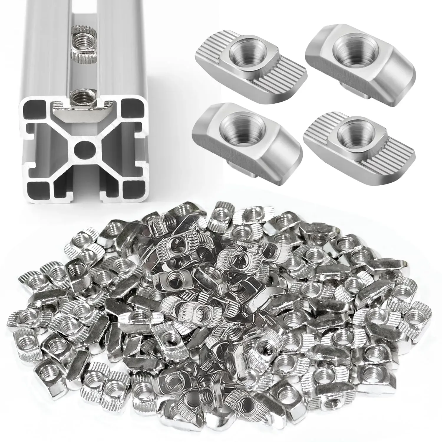 Auf Lager Versand durch Amazon100 Stück Nutensteine M8 Set, Nutenstein Set für Aluminiumprofil, 50 T Nut Schiene M8 & 50 Sechskantschrauben M8, Passend für 8mm Nut, T-Nutmuttern Schrauben für 30-Serie Aluminium Extrusionsprofile