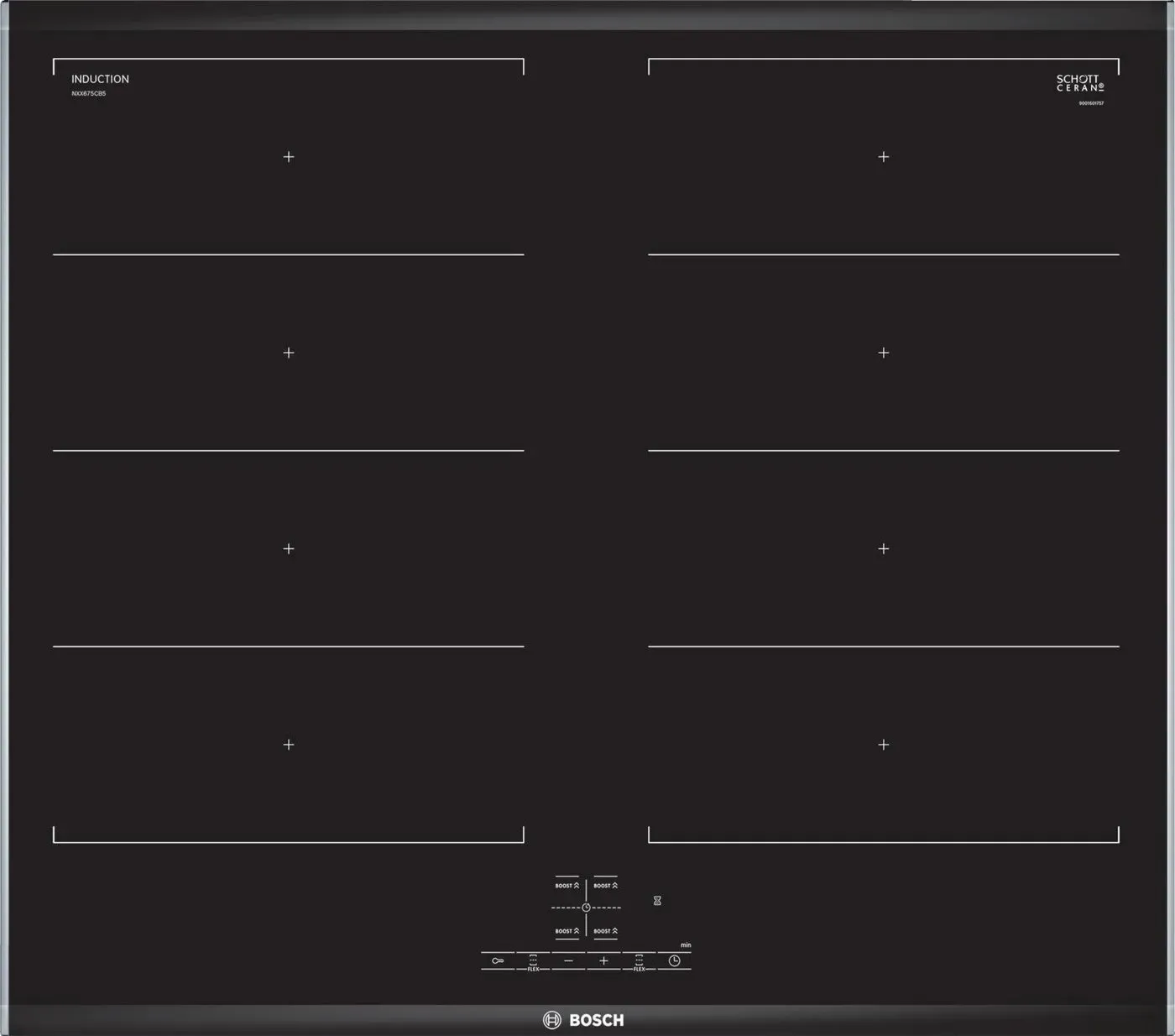 Kurzfristig (innerhalb 3-5 Tage)Bosch Serie 4 NXX675CB5E 60 cm Induktions Kochfeld/Herdplatte 4 Zone(n)