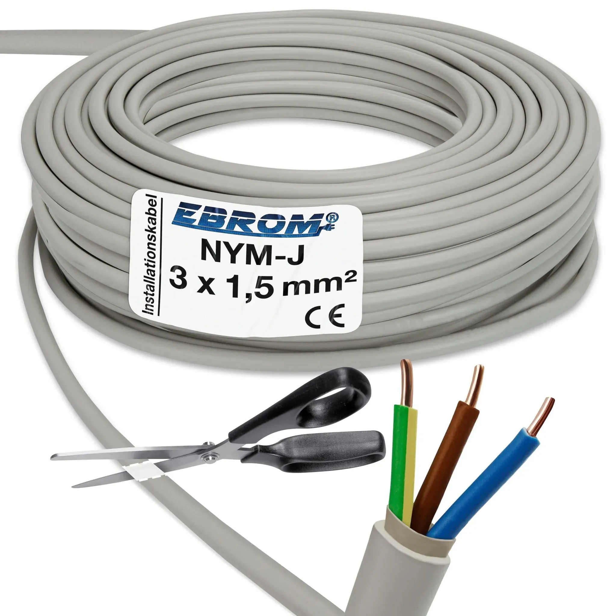 Dieses Angebot ist ein Beispiel für Angebote, die kürzlich auf dem eBay-Marktplatz in der Kategorie 259293 verfügbar waren. Bitte aktualisieren Sie die Suchergebnisse um aktuelle Angebote zu erhalten. ![]() ![]() EBROM NYM-J 3x1,5 mm2 - Mantelleitung - Installationsleitung - Feuchtraumleitung - grau - große Auswahl in vielen Längen in 5 Meter Schritten bis 250 Meter am Stück - Ihre Länge: 3x1,5 mm2, 120 Meter