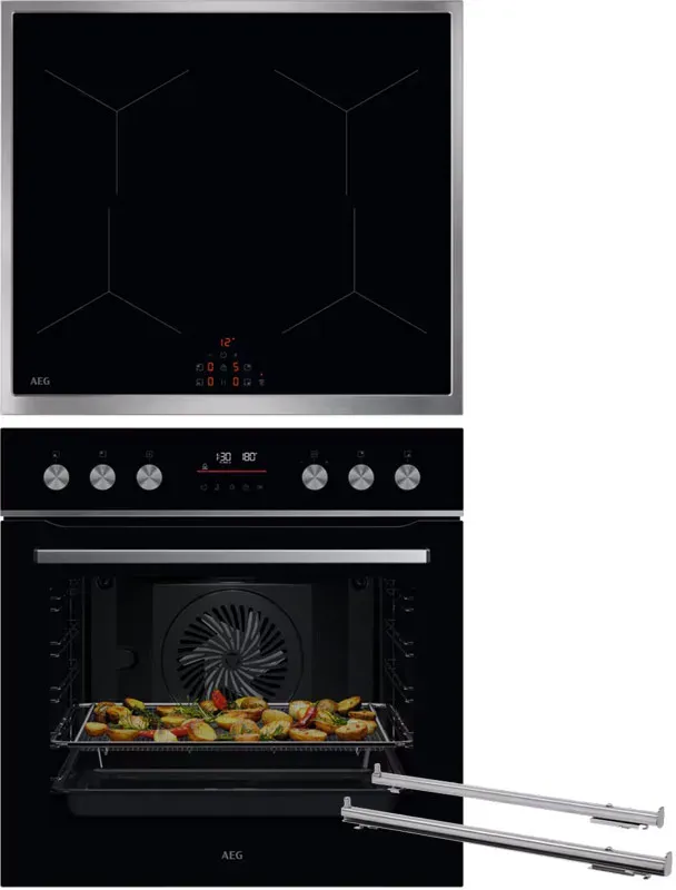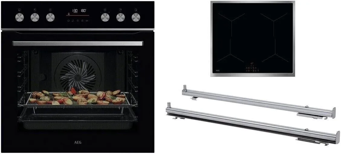 Lieferbar. Lieferzeit 3-5 Werktage.AEG Einbauherd-Set FXHS24M61 (OA5PE42AB + OIX64A00XB), 60 cm, Schwarz/Edelstahl