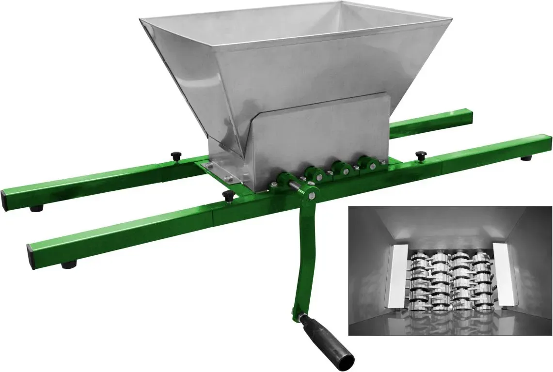 Kategorie: Landwirtschaftstechnik - Wiltec - GTIN:4250390885800 - [Großzügiger 7-l-Trichter] - Der Edelstahltrichter mit 7 Litern Fassungsvermögen ermöglicht das Mahlen von Obst und Gemüse für Saft, Würze oder Most.[Stabiles Design] - Das Schneidwerk aus Aluminiumlegierung ist auf einem stabilen Grundrahmen montiert, der mit Gummifüßen für sicheren Halt ausgestattet ist.[Vielseitige Anwendung:] - Ideal zum Zerkleinern von Beeren, Trauben, äpfeln und weichem Obst/Gemüse für die Herstellung hochwertiger Obstmaische. Eine gute Obstmühle gehört zur Grundausstattung bei der Herstellung von Saft, Wein oder Most. Denn zur Erntezeit fällt innerhalb kurzer Zeit jede Menge Obst an, das zügig verarbeitet werden muss. Genau hierfür ist diese Obstmühle ideal. Die praktische Mühle kann zur Fertigung einer Obstmaische aus äpfeln, Birnen oder anderem steinlosen Obst verwendet werden. Eine optimale Most- oder Maischequalität erhalten Sie, wenn Sie faules, unreifes oder aufgerissenes Obst vor dem Mahlvorgang aussortieren. Neben der hohen Saftausbeute punktet die Mühle auch durch ihren manuellen Antrieb. Dadurch ist sie unabhängig von elektrischem Strom und überall sofort einsatzbereit. Zum Zerkleinern wird das Obst einfach in den 7 Liter fassenden Trichter gegeben, und mit der Handkurbel wird das robuste, leichtgängige Schneidwerk in Bewegung gesetzt. In kurzer Zeit kann bequem und schnell eine große Menge zerkleinert werden. Das Schneide- bzw. Mahlwerk ist aus Aluminium gefertigt. Wir ... ![]() ![]() Wiltec - Obstmühle mit 7L Trichter und runder Handkurbel Obsthäcksler leicht zu reinigen für Saftpresse Obstpresse zur Herstellung von Saft Würze