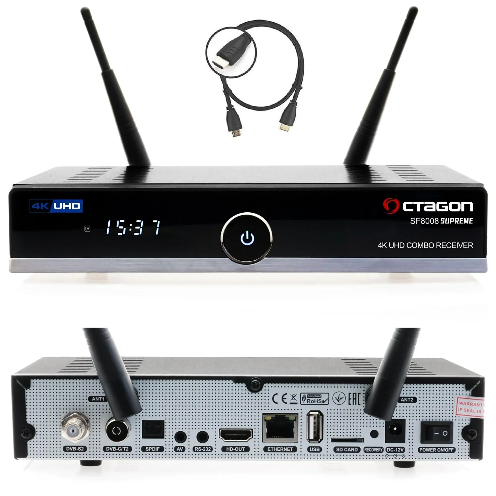 Zustand: Neu - Satelliten-Receiver - Octagon - OCT-SF8008-SUPREME-COMBO - EAN: 4262454470051 - œ JETZT NOCH BESSER: Der neue Octagon SF8008 SUPREME Combo Receiver baut auf einem bereits hochwertigen Tuner auf und verbessert die Empfangsqualität durch den Einsatz eines fortschrittlichen Tuners und Demodulators weiter. Die Modelle setzen neue Standards und bieten fest verbautes Dual-Band-WiFi (2.4/5 GHz) mit bis zu 1200 Mbps und Bluetooth 5.1 Funktion - eine herausragende Kombination von Leistung und Konnektivität œ WELTNEUHEIT: Mit Stolz stellt Octagon als Vorreiter im Bereich Receiver-Hersteller die SF8008 SUPREME Modelle vor, die als weltweit erste die M.2-Schnittstelle für die interne Integration von M.2-Festplatten anbieten œ ALLE TUNER VARIANTEN VORHANDEN & MULTISTREAM: Egal ob Satellitenfernsehen, Kabelfernsehen oder DVB-T Empfang, mit dem Octagon SF 8008 Supreme Combo UHD Receiver können Sie alle 3 Möglichkeiten empfangen, einschließlich Multistream Support œ 2 SOFTWARE FUNKTIONEN IN EINER BOX: Mit der Multiboot-Funktion können Sie 2 verschiedene Betriebssysteme benutzen. Sie haben jederzeit die Möglichkeit von DEFINE OS auf E2 LINUX zu wechseln und genauso auch umgekehrt œ GIGABIT NETZWERK: Wenn Sie maximale Datenraten in Ihrem Netzwerk erreichen möchten, dann kommen Sie um ein Gigabit LAN nicht herum. Mit dem Octagon SF8008 sind bis zu 1000 MBit/s möglich - bei Amazon.de Ein aktuelles V3-Modell des Twin Sat Receivers, das verbesserte Leistung und Funktionen für Satelliten-Enthusiasten bietet. ![]() ![]() OCTAGON SF8008 V3 (Version 3) UHD 4K Supreme Twin Sat Receiver, 2X DVB-S2X Tuner, E2 Linux & Define OS, mit Aufnahmefunktion, M.2 M Key, Gigabit LAN, Kartenleser, Sat to IP, Multistream, WiFi WLAN