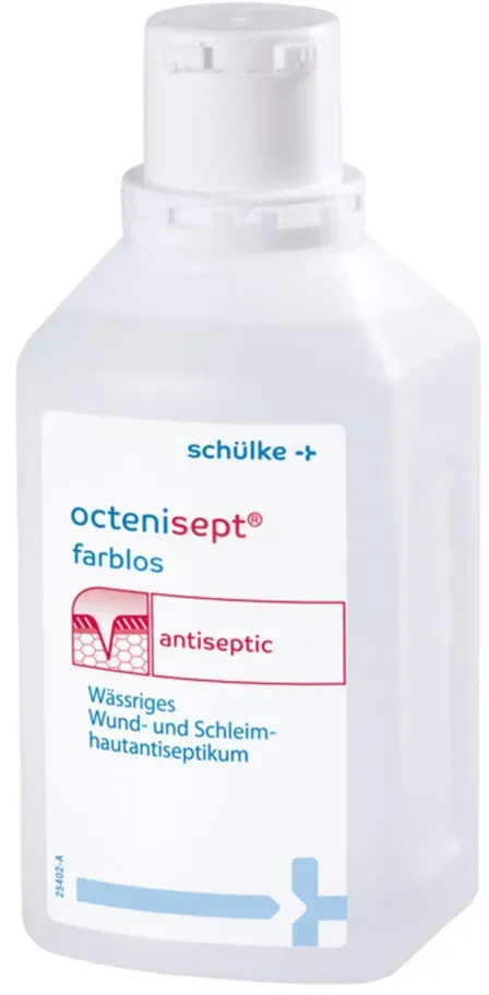 octenisept - EAN: 4032651214648 - Zur schmerzfreien Wund- und Schleimhautantiseptik.schmerzfreie Anwendung breites antiseptisches Wirkungsspektrum schneller Wirkungseintritt ab 1 Minute sehr gute Haut- und Schleimhautverträglichkeit für Säuglinge und Frühgeborene geeignet farblos - bei shop-apotheke.com - aus Yadore Produktdaten ![]() claras- apotheke.d e Octenisept Wund- und Schleimhautantiseptikum farblos, 500 ml