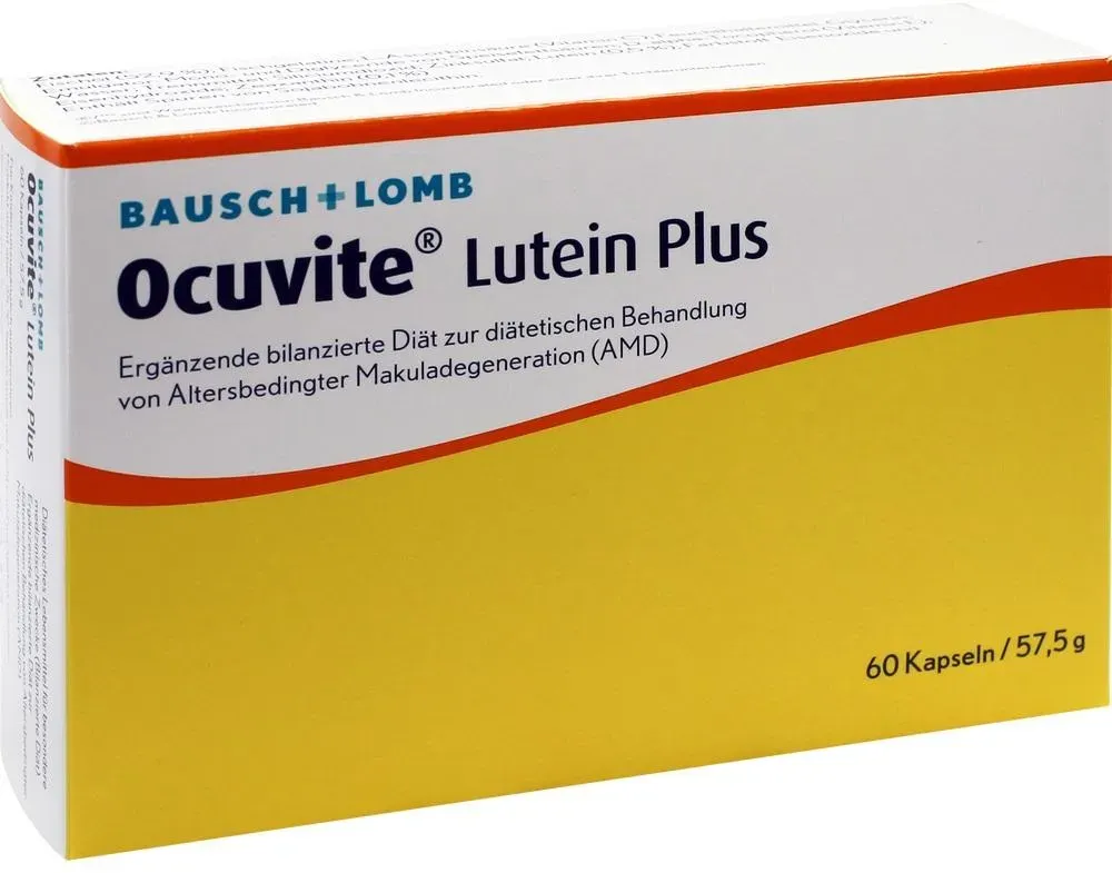 Dr. Gerhard Mann - Chemisch-pharmazeutische Fabrik - EAN: 4030571003236 - Ocuvite Lutein Plus 60 St - bei docmorris.de - aus Yadore Produktdaten ![]() ![]() Bausch + Lomb Ocuvite Lutein Plus 60 St