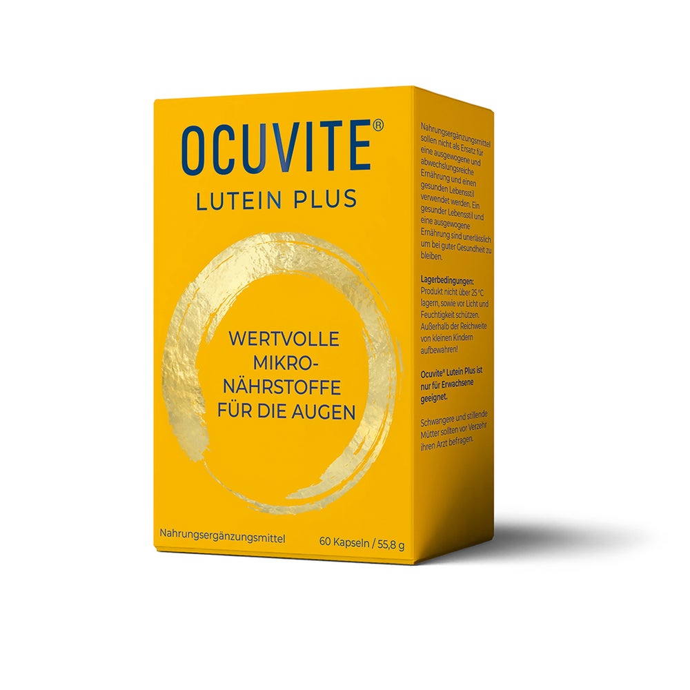 Nahrungsergänzungsmittel mit Zink zum Erhalt der normalen Sehkraft sowie Lutein und Zeaxanthin Ocuvite Lutein Plus ist ein Nahrungsergänzungsmittel, das dem Körper neben verschiedenen Vitaminen auch die Mikronährstoffe Lutein und Zeaxanthin zuführt. Das Produkt enthält Zink zum Erhalt der normalen Sehkraft und zusätzlich Vitamin C und E, damit oxidativer Stress und daraus resultierende schädliche Auswirkungen auf die Zellen gemindert werden. Das Produkt auf einen Blick: Nahrungsergänzungsmittel mit Vitaminen und Mikronährstoffen Nur für Erwachsene geeignet Täglich 2 Kapseln Frei von Konservierungsstoffen Zusätzliche Zufuhr von: Lutein und Zeaxanthin Vitamin C und E Omega-3-Fettsäuren Im Laufe unseres Lebens ist der menschliche Organismus permanenten Belastungen ausgesetzt, von denen auch das Auge betroffen ist. Neben Umweltfaktoren und Stress ist besonders der natürliche Alterungsprozess für die Beeinträchtigung der Sehkraft verantwortlich. Umso wichtiger ist es, den menschlichen Organismus gerade im fortgeschrittenen Alter mit ausreichend Vitaminen und Nährstoffen zu versorgen. Zusätzlich ist ein gesunder Lebensstil und eine ausgewogene Ernährung unerlässlich, um bei guter Gesundheit zu bleiben. Nahrungsergänzungsmittel können durch ihre ernährungsspezifischen und physiologischen Eigenschaften einen ergänzenden Beitrag zur Vermeidung eines Nährstoffdefizits und zur Gesundheitserhaltung leisten. SO FUNKTIONIERT S 1 mal täglich 2 Kapseln mit Wasser zu einer Mahlzeit ... ![]() claras- apotheke.d e Ocuvite Lutein Plus, 60 St