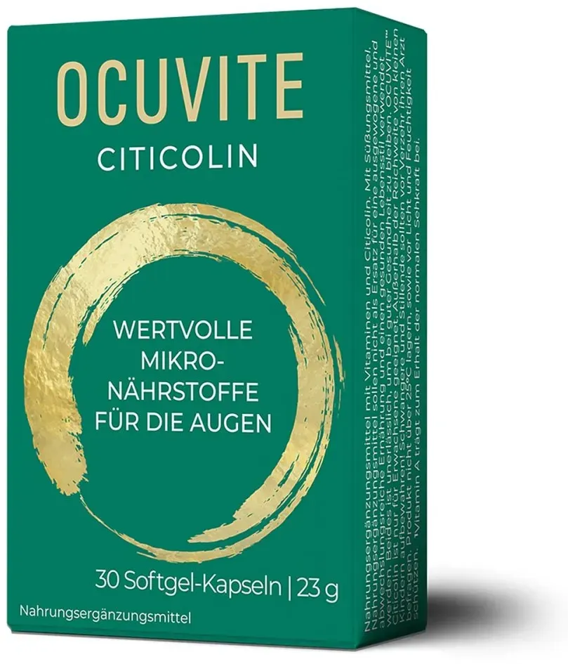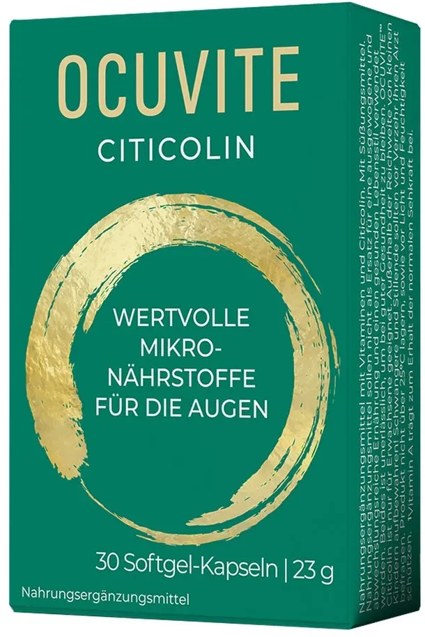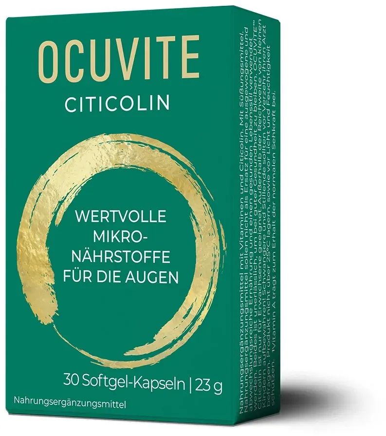 21 Händlerangebote bei billiger.de - Kategorie: Nahrungsergänzungsmittel - Bausch + Lomb - Anwendungsgebiet von Ocuvite Citicolin KapselnOcuvite Citicolin Kapseln sind ein Nahrungsergänzungsmittel mit wertvollem Citicolin und Vitaminen. Vitamin A trägt zur Erhaltung der normalen Sehkraft bei und Vitamin B6 unterstützt die normale Funktion des Nervensystems. Außerdem trägt es zu einem normalen Homocystein-Stoffwechsel bei. Im Laufe des Lebens wird der menschliche Organismus ständig belastet, was auch das Auge betrifft. Neben Umweltfaktoren und Stress spielt insbesondere der natürliche Alterungsprozess eine entscheidende Rolle bei der Verschlechterung der Sehkraft. Daher ist es besonders wichtig den Körper, insbesondere im höheren Alter, mit ausreichend Vitaminen und Nährstoffen zu versorgen. Ocuvite Citicolin Kapseln können hier eine wertvolle Ergänzung liefern. Wirkstoffe / Inhaltsstoffe / ZutatenZutaten von Ocuvite Citicolin Kapseln: Citicolin, Mittelkettige Triglyceride, Fischgelatine, Festigungsmittel: Glycerin, Maisstärke, Verdickungsmittel: Mono- und Diglyceride von Speisefettsäuren, Aromen, Emulgator: Sonnenblumenlecithin, D-alpha-Tocopherylacetat, Farbstoff: Eisenoxide und Eisenhydroxide, Retinylpalmitat, Pyridoxinhydrochlorid, Süßungsmittel: Sucralose. Nährstoffe pro Kapsel NRV* pro Kapsel (in %) Vitamin A (RE) 120 g 15 % Vitamin E ( -TE**) 1,8 mg 15 % Vitamin B6 0,21 mg 15 % Citicolin 250 mg */* * NRV = Nährstoffbezugswerte (Nutrient Reference Values) gem. Anhang ... Dieses Angebot für Bausch + Lomb OCUVITE Citicolin Kapseln 30 St von Preisapo ist eine preiswerte Option für eine kleinere Packungsgröße. ![]() ![]() Bausch + Lomb OCUVITE Citicolin Kapseln 30 St