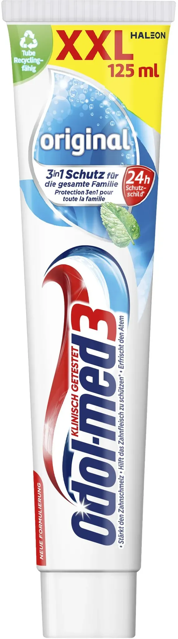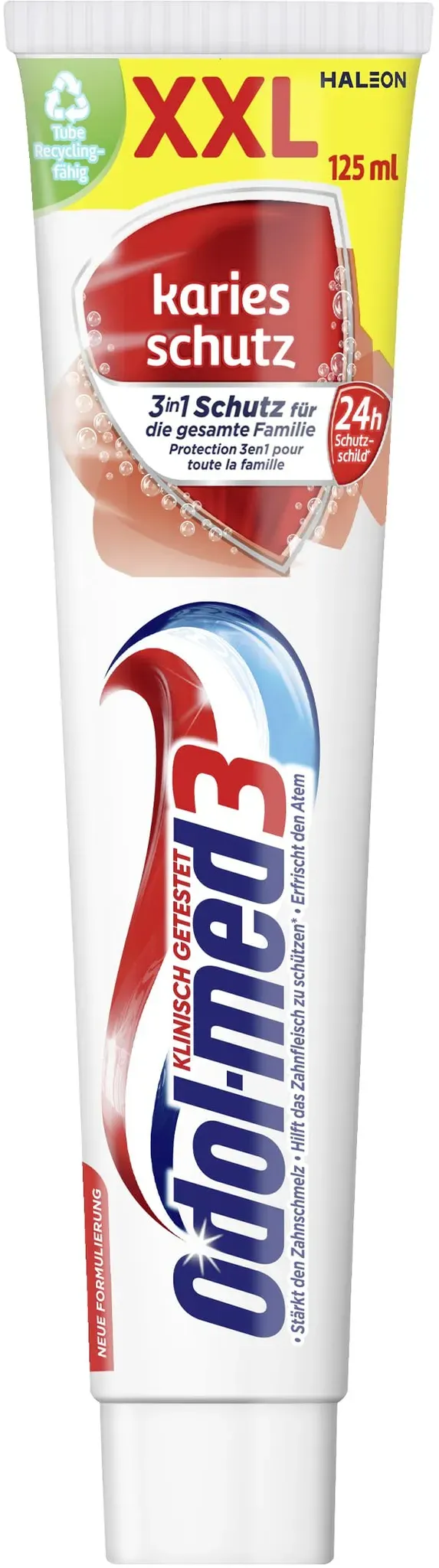 Zustand: Neu - 14,32 € / l - Zahncremes - Odol-med 3 Haleon Germany GmbH - 60000000204180 - EAN: 5054563191489 - 24h Schutzschild* gegen Zuckersäure-Attacken - eine der Hauptursachen von Karies 3in1 Schutz für die gesamte Familie: Stärkt den Zahnschmelz, hilft, das Zahnfleisch gesund zu halten** und erfrischt den Atem Frischer Geschmack Fluorid wird von den Zähnen aufgenommen und stärkt den Zahnschmelz Recyclingfähige Tube - bei Amazon.de Eine günstige Zahnpasta von Odol-med3, die speziell Karies-Schutz bietet. ![]() ![]() Odol-med3 Karies Schutz Zahnpasta Minze 125 ml