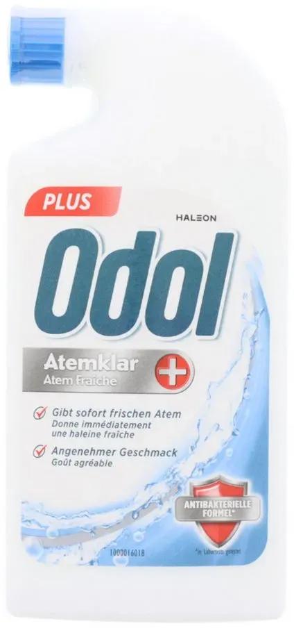 EAN: 4150198276247 - ODOL MUNDWASSER Plus 125 ml von Haleon Germany GmbH (PZN 19827624) günstig kaufen bei Fliegende-Pillen.de - seit über 1 n Ihre Versandapotheke. Günstig, diskret, sicher. - bei fliegende-pillen.de - aus Yadore Produktdaten Eine beliebte alkoholfreie Mundspülung für sofort frischen Atem und antibakterielle Pflege. ![]() ![]() Odol Mundwasser Atemklar +, alkoholfreies Mundwasser-Konzentrat für sofort frischen Atem und antibakterielle Pflege, 125 ml