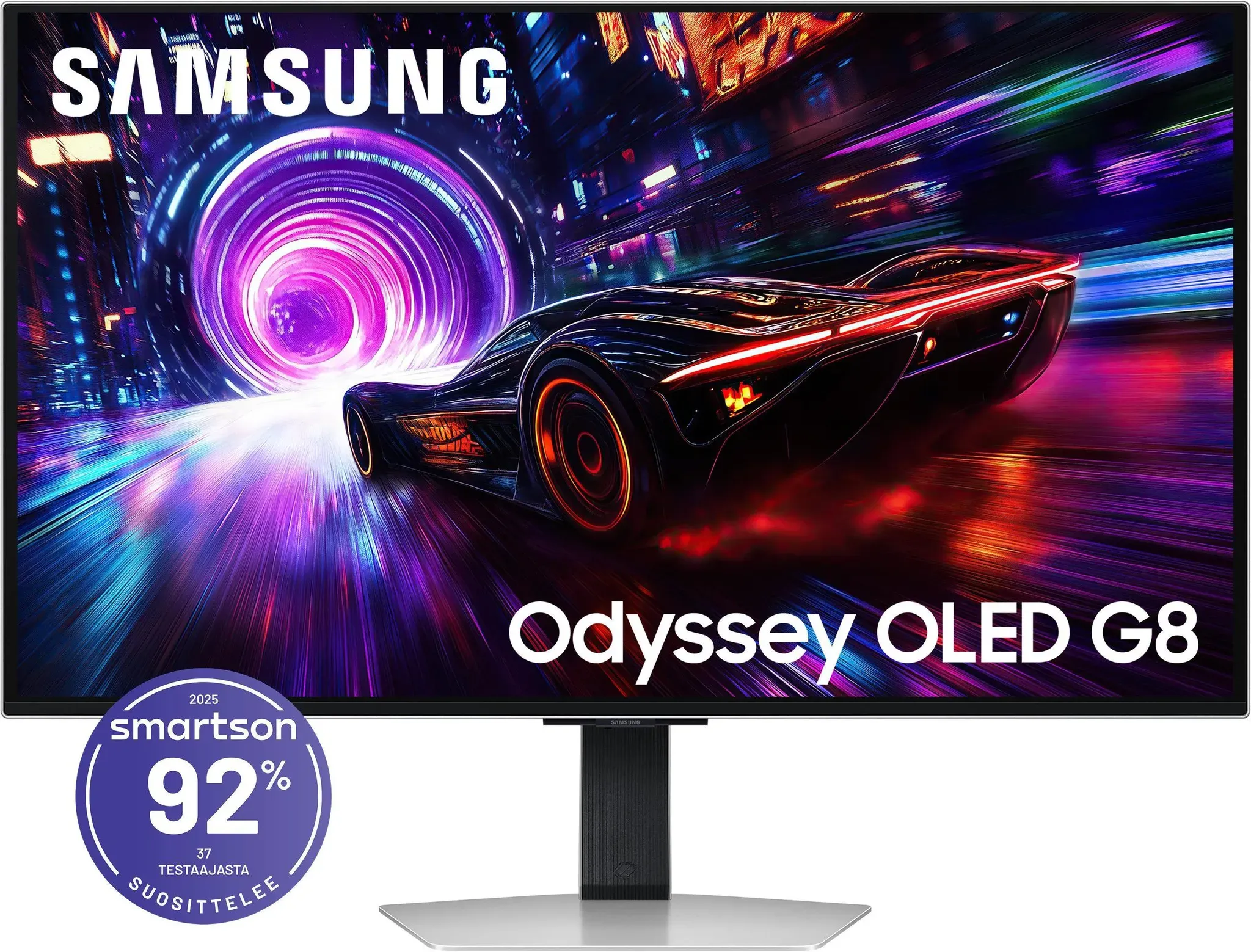 Samsung - EAN: 8806095977287 - Tauchen Sie ein in die Zukunft des Gaming mit dem Samsung Monitor Gaming Odyssey OLED G8Der 27' UHD Samsung Odyssey OLED G8 - G81SF Gaming Monitor wurde für den anspruchsvollen Gamer entwickelt, der visuelle Perfektion und kompromisslose Leistung anstrebt. Wenn Sie genug von Bildschirmen haben, die Ihren Lieblingsspielen nicht gerecht werden, machen Sie sich bereit für ein revolutionäres Erlebnis.Unerreichte Bildqualität: 4K UHD und QD-OLED-TechnologieDank der 4K UHDQD-OLED-Technologie wird jedes Detail in atemberaubender Klarheit wiedergegeben. Die Pixeldichte von 166 PPI bringt jedes Detail zum Vorschein und lässt Sie voll und ganz in Ihre virtuellen Lieblingswelten eintauchen. Dieser Gaming-Monitor ist nicht nur ein Bildschirm, sondern ein Fenster zu neuen Welten.4K UHD-Auflösung: Unglaublich scharfe und detaillierte Bilder.QD-OLED-Technologie: Lebendige Farben und tiefe Schwarztöne für außergewöhnlichen Kontrast.Maximale Konzentration, keine Ablenkungen: Glare-Free-Technologie Vergessen Sie störende Reflexionen und konzentrieren Sie sich auf das Gewinnen. Ideal für alle, die in hell erleuchteten Umgebungen spielen und eine klare, ungehinderte Sicht benötigen.Weniger Reflexionen: Spielen Sie ohne Ablenkung, auch bei hellem Sonnenlicht.Unglaubliche Details auch bei Dunkelheit: VESA DisplayHDR TrueBlack 400Der VESA DisplayHDR TrueBlack 400 -Standard bietet tiefe, naturgetreue Schwarztöne und verbessert den Kontrast und die Farbtiefe. ... ![]() ![]() Samsung Odyssey OLED G8 G81SF, 27 Zoll 4K Gaming Monitor, 240 Hz, QD-OLED, G-SYNC Compatible TFSS-209