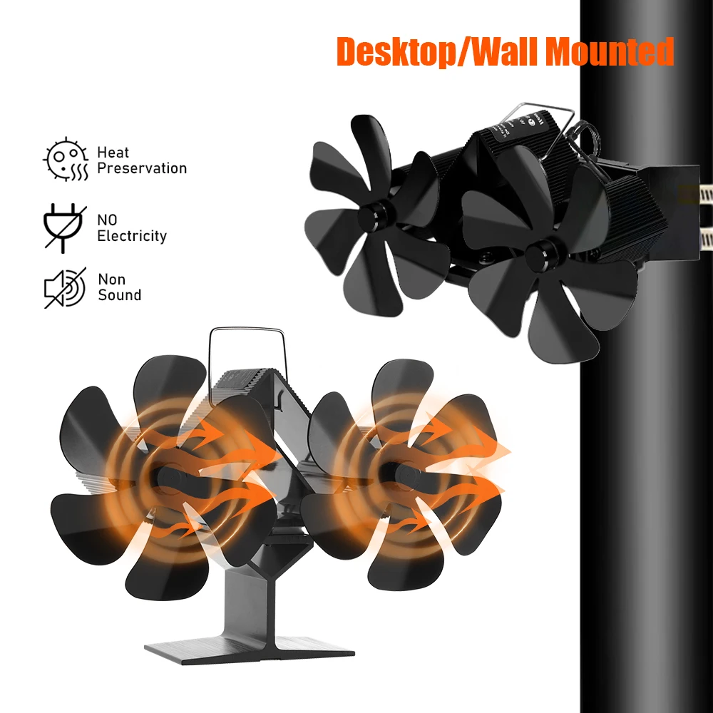 keine Angabe 6-10 Werktage in_stockDoppelter Holzofenventilator - 6-Blatt-Kaminventilator - Selbstbetriebener Ventilator - Wärmebetriebener Ventilator - Leise, umweltfreundliche
