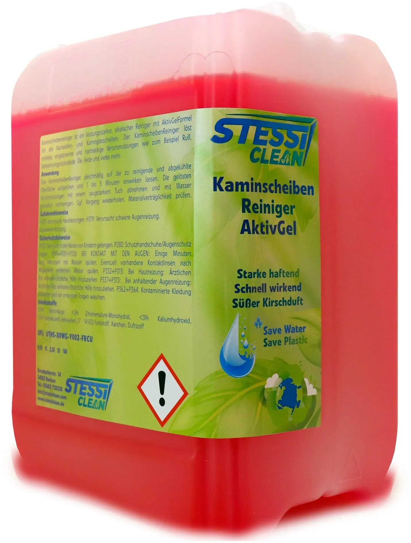 Kategorie: Reinigungsmittel - Element - GTIN:4260685651492 - entfernt Ruß, Schmutz, Fett, Brennrückstände und Staub für alle öfen und Kamine optimal geeignet bei eingebranntem Fett gebrauchsfertige Lösung hervorragend geeignet auf feuerfestem alkalibeständigen Glas - 24,99 Euro bei Amazon Marketplace Health & Personal Care - gefunden von billiger.de StessiClean AktivGel in der 25 Liter Größe ist die größte verfügbare Option und somit ideal für den gewerblichen Gebrauch oder sehr häufige Reinigung. ![]() ![]() StessiClean Kamin & Ofenglas Reiniger AktivGel | 25 Liter | Kaminscheibenreiniger für hartnäckigen Verschmutzungen | Kaminreiniger - Ofenreiniger | Kamin und Ofenglasscheiben | Ruß Reiniger