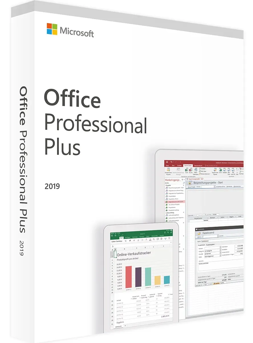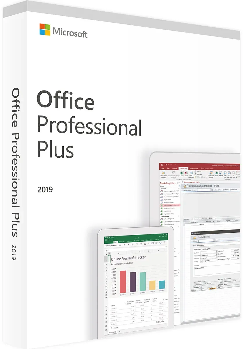 Kategorie: Office-Software - Microsoft - GTIN:0710144640511 - Produktinformationen 'Microsoft Office 2019 Professional Plus Windows'. Microsoft Office 2019 Professional Plus: Das digitale Büro in Bestform. Office aus dem Hause Microsoft ist seit Jahrzehnten der Inbegriff für digitale Büroarbeit. Seit der Veröffentlichung der Erstversion im Jahr 1989 hat sich die Software-Sammlung zu einer der erfolgreichsten der Welt entwickelt. Microsoft Office 2019 Professional Plus baut auf diesen umfassenden Erfahrungen auf. Die Entwickler haben es dabei geschickt verstanden, die bestehenden Stärken weiter zu verbessern, Schwächen zu beseitigen und die Software-Lösung noch leistungsfähiger zu machen.. Die wichtigsten Features von Microsoft Office 2019 Professional Plus. Alle bekannten Office-Applikationen wie Word, PowerPoint, Excel oder Outlook unter einem Dach.. Für den Geschäftsbetrieb unverzichtbare Applikationen wie OneNote, Access und Publisher sind ebenfalls enthalten.. Einmalige Anschaffung zum Festpreis ohne monatliche Kosten.. Zahlreiche neue Funktionen für alle Applikationen.. Smarte Zusammenarbeit der einzelnen Applikationen: Inhalte können nahtlos zwischen den Anwendungen im- und exportiert werden.. Mehr Intelligenz: Alle Office-Applikationen wurden so optimiert, dass sie alltägliche Arbeitsabläufe deutlich vereinfachen.. Microsoft Office 2019: Das Beste aus Office 2016 und Office 365. Microsoft Office durfte im Jahr 2019 bereits seinen 30. Geburtstag feiern. Diesen ... Für 19.95 Euro bietet dieses Angebot eine Online-Aktivierung für 32-/64-Bit-Systeme, was Flexibilität gewährleistet. ![]() ![]() Microsoft Office 2019 Professional Plus 32-/64 Bit Aktivierung online