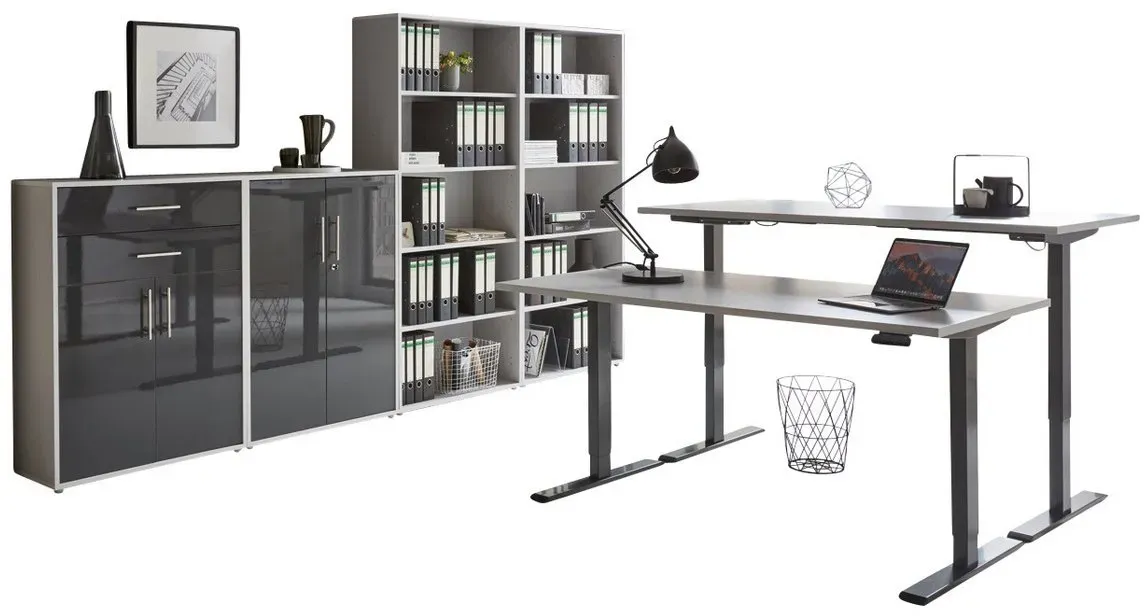 lieferbar-in 2-3 Werktagen bei dirBMG Möbel BMG Möbel Büromöbel-Set e-Office Set 21, (Büromöbel Set 21, elektrisch höhenverstellbarer Schreibtisch + Aktenschränke), stufenlos verstellbar 69-119 cm, mit Memory-Funktion grau