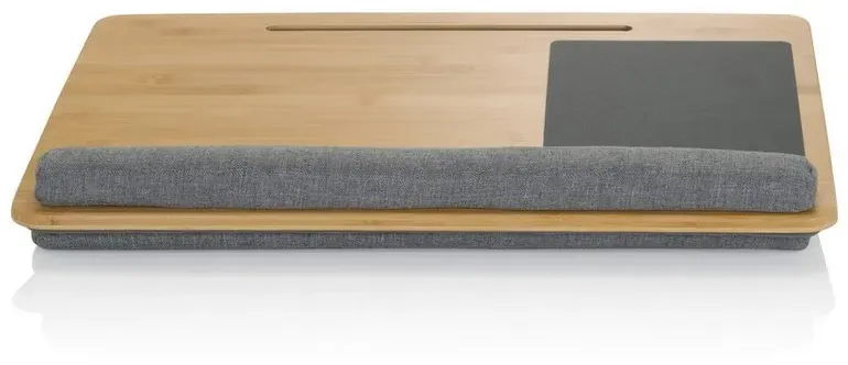 lieferbar-in 2-3 Werktagen bei dirhjh OFFICE Laptop-Ständer Laptopunterlage COMFILAP Bambus, Stoff, (bis 21 Zoll, mit Maus- und Handgelenkauflage, Bequeme Kissenbasis) grau