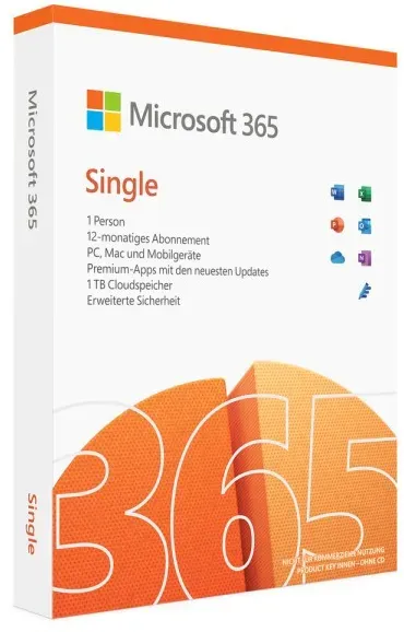 Büroanwendungssoftware Microsoft Upsell Computer PCs Upsell Notebooks & Tablets Feed instock Feed Alle Software - EAN:4064064001409 - Microsoft Office 365 Single ESD Download - 1 Benutzer für Ein einziges, komfortables Abonnement, das Office-Premium-Apps, 1 TB Cloud-Speicherplatz und erweiterte Sicherheitsfunktionen für alle Ihre Geräte umfasst. Installation auf mehreren PCs, Macs, Tablets, Handys möglich. Microsoft 365 Single bietet: - Zugriff auf intelligente Hilfefunktionen sowie Hunderte von Premiumvorlagen, Fotos, Symbolen und Schriftarten in Word, Excel und PowerPoint- Speichern und Teilen von Dateien und Fotos auf verschiedenen Geräten mit OneDrive- Nutzung erweiterter Sicherheitsfunktionen in OneDrive und Outlook- Nutzung des Abonnements auf bis zu 5 Geräten gleichzeitig ESD Download Lizenz - Sie erhalten den Lizenz-Key per E-Mail, und können die stets aktuellste Software downloaden. Hinweis - Download Lizenzen können nicht zurückgegeben oder storniert werden nach dem Kauf. Microsoft Office-Vollversion Mit Office 365 Personal erhalten Sie die aktuelle Desktopversion von Office und zwar auf einem PC oder Mac sowie einem Windows-Tablet oder iPad. Mit dabei sind zum Beispiel darunter Word, Excel, PowerPoint, OneNote und Outlook. Sie profitieren stets vom vollen Funktionsumfang - online und offline. Außerdem lässt sich Office auch auf verschiedenen Smartphones installieren. Geräteübergreifender Zugriff Den zusätzlichen Onlinespeicher für Office 365 Personal erhalten ... Dieses Angebot ist ideal für Familien, da es Office-Apps inklusive Copilot-KI und großzügigen 6 TB Cloudspeicher für mehrere Nutzer bietet. ![]() ![]() Microsoft 365 Family (Office-Apps inkl. Copilot-KI und 6 TB Cloudspeicher) ESD + PKC