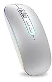 Kategorie: Mäuse - Cimetech - Dual Mode Kabellose Maus Maus Bluetooth 5.1 / 2.4G Dual Mode wireless Maus Connection Switch einfach. Kabellose Bluetooth Maus 5.1 bringt schnelle Reaktion, präzise Bewegung, stabile Verbindung und reibungsloseres Tracking. 2.4G Usb Maus Plug&Play mit USB-Nano-Empfänger. (USB-Empfänger in der Unterseite der Computermaus verstaut) Upgrade LED Design Kabellose Maus Bluetooth mit 5 verschiedene Farben ändern sich während des Gebrauchs zufällig, sorgen für beruhigende Lichteffekte und schaffen eine kühle und raffinierte Atmosphäre für Arbeit und Unterhaltung. Schalten Sie die Maus-LED aus, wenn Sie sie nicht verwenden, um Strom zu sparen. Mit 3 einstellbaren DPI-Pegeln können Sie die Geschwindigkeit der Reisemaus frei steuern Leise und Ergonomische Funkmaus Die Bluetooth Mouse hört man nicht beim Klicken,das Mausrad der kabellosen Computermaus ist beim Drehen leise. Ideale Laptop Maus für Büro, Zuhause und Freizeit. Ergonomische Maus geeignet für die linke und rechte Hand. Die Oberflächenbeschichtung der schnurlosen Maus gibt Ihnen einen weichen Griff. Nicht klebrig, auch wenn Sie schwitzen Mit Lithium-Akku Wiederaufladbare Funkmaus Die Bluetooth aufladbare Maus wird mit einem USB-Kabel zum Aufladen geliefert, das Sie auch beim Aufladen verwenden können. Wenn der Akku fast leer ist, ist der Cursor ungenau und Bluetooth wird getrennt. Das einstündige Ladegerät ermöglicht eine Betriebsdauer von Wochen, automatische Standby-Funktion Bei ... ![]() ![]() cimetech Bluetooth Maus kabellos (Bluetooth 5.1 + USB 2,4 GHz) LED Dual Mode- Wiederaufladbare Optische Office Funkmaus für Laptop MacBook Air Pro,iPad,Computer,Desktop, Mouse