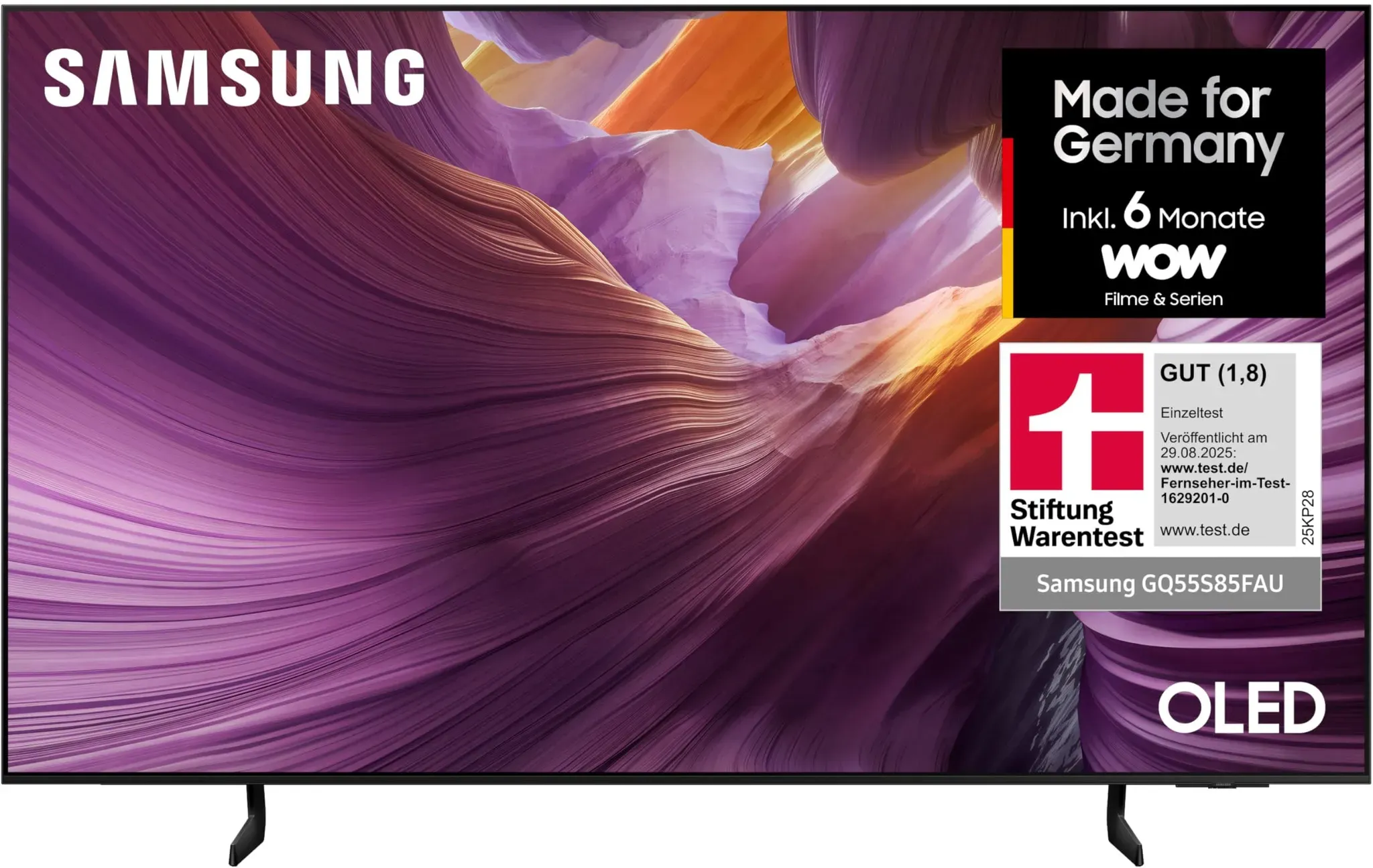 Zustand: Neu - Fernseher - Samsung - GQ55S85FAU - EAN: 8806095995229 - Kostenloser Streaming-Content: Dank Made for Germany kannst Du deine Lieblingsserien, Blockbuster oder Sport-Highlights in bestechender Bildqualität genießen - ganz gleich, ob via Stream oder Satellit. Einfach Aktions-TV oder Aktions-Soundbar mit deutschem Modell-Code kaufen und kostenlosen Streaming-Content dazu erhalten. Samsung AI TV mit OLED HDR für hohe Helligkeit, lebendige Bilder und starke, natürliche Kontraste Neural Quantum 4K AI Gen2 Prozessor und 4K AI Upscaling Pro für ein atemberaubendes Seherlebnis in 4K auf deinem TV-Gerät Die Harmonie klassischer Eleganz und minimalistischen Designs dank Contour Design mit fließender Eleganz in einer glatten wellenähnlichen Silhouette Multidimensionales Sounderlebnis durch Dolby Atmos und AI Sound, Hohe Farbtreue dank Pantone-zertifizierter Farben Lieferumfang: 1 x Samsung KI Fernseher OLED 4K S85F, 55 Zoll (138 cm), Smart TV inkl. Fernbedienung Premium Solar Smart Remote, GQ55S85FAUXZG - bei Amazon.de Dieser Samsung OLED 4K S90F mit 55 Zoll bietet eine exzellente Bildqualität und moderne Smart-TV-Features zu einem guten Preis. ![]() ![]() Samsung OLED 4K S90F 55 Zoll (140 cm), UHD Fernseher, NQ4 AI Gen3 Prozessor, OLED HDR+, 4K Upscaling Pro, Dolby Atmos, Gaming Hub, Motion Xcelerator 144Hz, Samsung Vision AI Smart TV, 55S90F