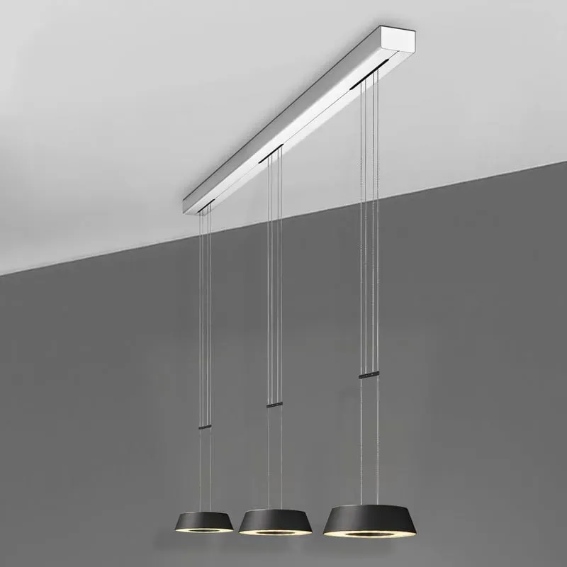 2 Händlerangebote bei billiger.de - Kategorie: Pendelleuchten - Oligo - Die Oligo Glance LED Pendelleuchte ist eine elegante Leuchte für zu Hause oder fürs Büro. Sie ist höhenverstellbar und verbreitet nach oben und unten ein schönes angenehmes Licht. Die Leuchte gibt es 1-, 2- und 3-flammig. Durch die Gestensteuerung ist eine leichte und intuitive Bedienung der Glance möglich. Das ist deutlich angenehmer als einen Schalter zu benutzen und auch zeitgemäß. Zusätzlich besitzt die Leuchte einen Sleep-tight Modus. nach Drücken des Schalters wird das Licht innerhalb von zwei Minuten langsam heruntergefahren. Dies ist ideal am Abend, wenn man sich ins Bett legen und schlafen will. Entworfen wurde die LED Pendelleuchte von Ottenwälder und Ottenwälder. Dieses Team hat langjährige Erfahrung mit hochwertigen Leuchten und dies lässt sich auch an der Glance erkennen. So hat die Leuchte bereits einige Preise für ihr Design gewonnen: iF Product Design Award 2014, Leu... - GTIN:4035162333426 Diese 3-flammige Pendelleuchte in Schwarz matt ist eine elegante Lösung für größere Räume oder Esstische. ![]() ![]() Oligo Glance LED 3-flammig, schwarz matt