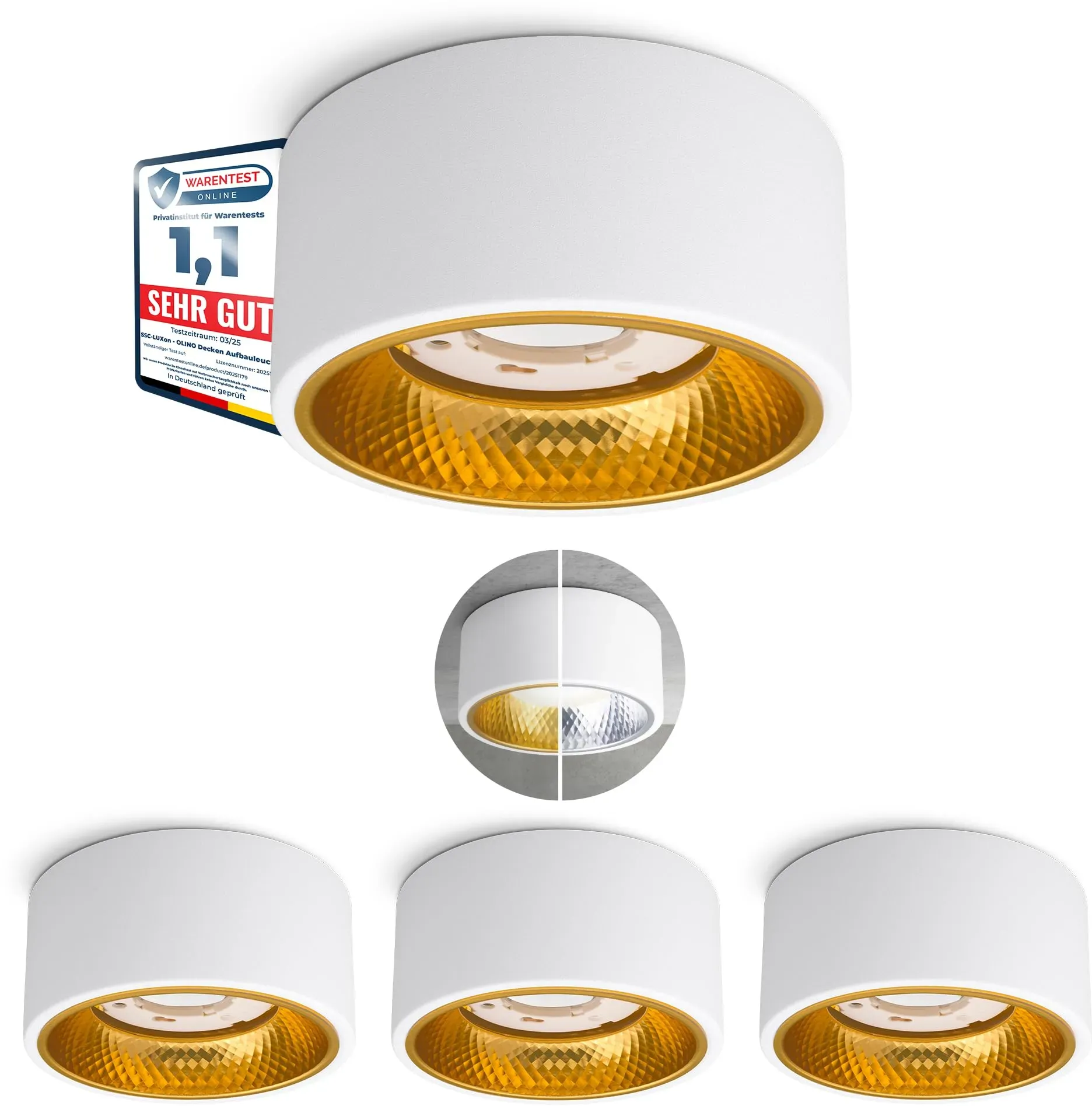 2 Händlerangebote bei billiger.de - Kategorie: Einbauleuchten - SSC-LUXon - MODERNES DESIGN: Elegante Deckenlampe OLINO mit wechselbaren Fronten in Gold und Silber, ideal als kleine Deckenlampe oder Spot Aufputz in Ihrem Zuhause EINFACHER ANSCHLUSS: Der Deckenstrahler lässt sich direkt an 230 Volt anschließen, einfach zu installieren als Aufputz Spots weiß. Lieferung ohne Leuchtmittel ANWENDUNGSBEISPIELE: Vielseitig einsetzbar als Deckenspots LED weiß oder Aufbaustrahler flach, ideal für Flur, Küche oder Büro. Flexibel als Deckenaufbauleuchte. ANPASSPARE FRONT: Im Lieferumfang ist je eine silberne und eine goldene Blende zum Wechseln enthalten. Passen Sie den Look selbst an Lieferung ohne Leuchtmittel - Maße: 15 x Höhe 6 cm - Material: Aluminium, Kunststoff - Fassung: 1x GX53 - Farbe: matt weiß (pulverbeschichtet) - GTIN:4262409010363 ![]() ![]() SSC-LUXon 4er Set OLINO Aufbaustrahler weiß matt mit wechselbarer Optik in gold & silber - 4x Spots Deckenleuchte Aufputz GX53