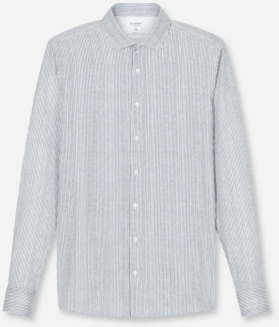Kategorie: Herren-Freizeithemden - Olymp - GTIN:4069089210720 - Materialzusammensetzung , Obermaterial: 86% Polyamid, 14% Elasthan, Materialart , Jersey, Pflegehinweise , Maschinenwäsche, nicht bleichen, nicht heiß bügeln - Vorsicht beim Bügeln mit Dampf (110 C), Größe , 40, Optik , gestreift, Stil , casual, Farbe , marine, Kragen , Kentkragen, ärmel , Langarm, ärmelabschluss , 2-Knopf-Manschette, Besondere Merkmale , Flex Jersey, body fit, Anti Smell, Kentkragen, - 76,99 Euro bei OTTO - gefunden von billiger.de Ein blaues Langarmhemd mit feiner Struktur und Haifischkragen, das sich durch sein hochwertiges Design auszeichnet. ![]() ![]()