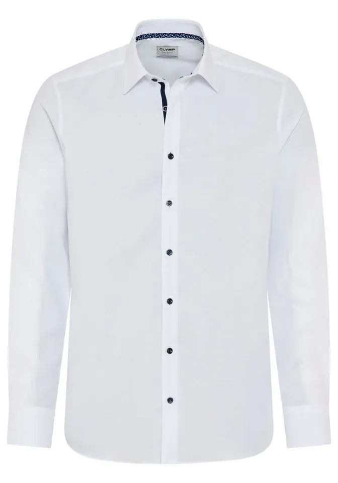 lieferbar-in 2-3 Werktagen bei dirOLYMP Businesshemd Level 5 Body Fit mit kontrastfarbigen Knöpfen und Details weiß 40