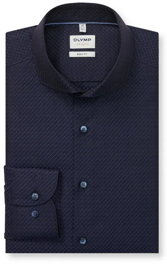 lieferbar-in 1-2 Werktagen bei dirOLYMP Langarmhemd Level 5 Businesshemd, body fit, mit feiner Struktur, Haifischkragen blau 40