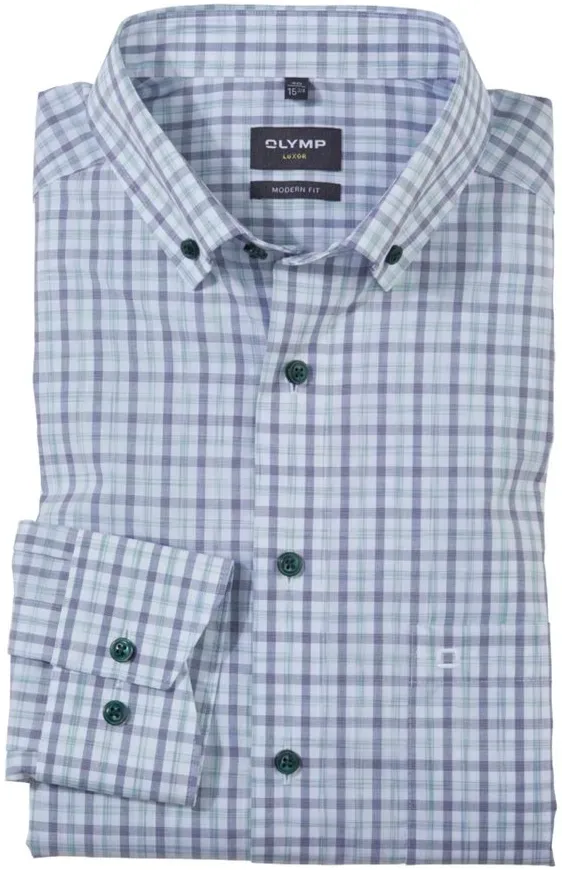 Kategorie: Herren-Freizeithemden - Olymp - GTIN:4066425656808 - Materialzusammensetzung , 100% Baumwolle, Größe , 44, Farbe , gr n, - 48,97 Euro bei OTTO - gefunden von billiger.de Ein blaues Businesshemd OLYMP Luxor modern fit aus 100% Baumwolle für 49,99 Euro, das durch seine Qualität überzeugt. ![]() Businesshemd OLYMP 'Luxor modern fit', Herren, Gr. 44, N-Gr, blau (bleu), Web, Obermaterial: 100% Baumwolle, 2-Knopf-Manschette, Hemden