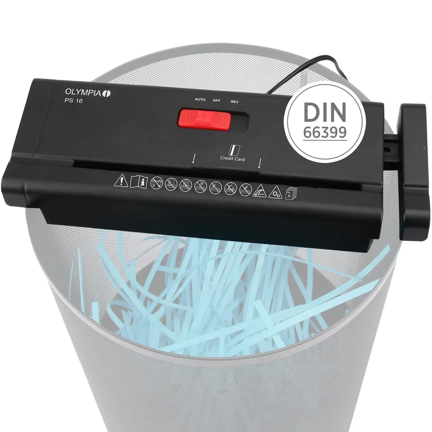 Auf Lager Versand durch AmazonOlympia PS 16 Aufsatzaktenvernichter | Streifenschnitt | Sicherheitsstufe P2 | Bis zu 6 Blätter gleichzeitig | 28-34 cm Papierkorb kompatibel | Überhitzungsschutz | 220 mm Eingabebreite | Schwarz