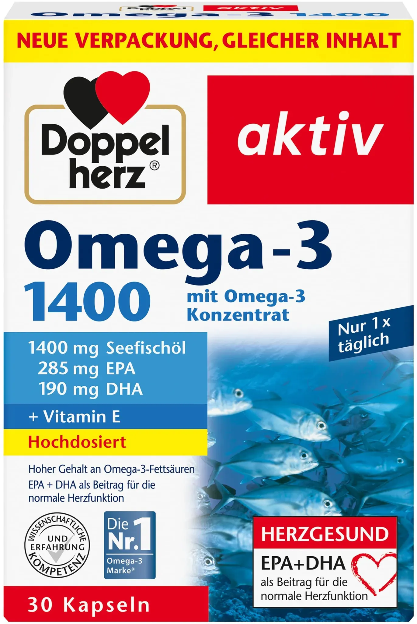 Kategorie: Nahrungsergänzungsmittel - Doppelherz - GTIN:4009932137606 - Doppelherz Omega-3 1400 mit Omega-3-Konzentrat enthält pro Kapsel 485 mg konzentrierte Omega-3-Fettsäuren (285 mg EPA, 190 mg DHA), um Herzgesundheit zu unterstützen und Zellen vor oxidativem Stress zu schützen. Nehmen Sie eine Kapsel täglich mit Flüssigkeit ein, als Teil eines gesunden Lebensstils. - 5,95 Euro bei Joybuy - gefunden von billiger.de ![]() ![]() 100 g - | Omega eBay 3 Lachsölkapseln | Fischöl | Softgel-Kapseln | ca. 70 Stk.