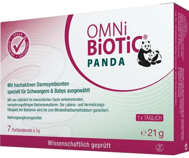 26 Händlerangebote bei billiger.de - Kategorie: Nahrungsergänzungsmittel - Allergosan - Anwendungsgebiet von OMNi BiOTiC Panda - Sachets für Mama und BabyDer Start ins Leben ist entscheidend für die Entwicklung der Darmflora eines Kindes: Sowohl die Geburtsmethode (vaginale Geburt oder Kaiserschnitt) als auch die Art der Ernährung des Neugeborenen (Stillen oder Flaschennahrung) haben einen maßgeblichen Einfluss auf die Zusammensetzung und Vielfalt der Darmflora.OMNi BiOTiC Panda - Sachets für Mama und Baby ist ein Nahrungsergänzungsmittel und wurde speziell entwickelt, um Mutter und Kind den besten Start zu ermöglichen. Die vier wissenschaftlich getesteten Bakterienstämme wurden gezielt für Schwangere und Babys ausgewählt und sind in zahlreichen Studien untersucht worden. Auf Basis langjähriger wissenschaftlicher Erfahrung und erfolgreicher Anwendung wird empfohlen, OMNi BiOTiC Panda - Sachets für Mama und Baby ab dem 7. Schwangerschaftsmonat und im gesamten ersten Lebensjahr des Kindes einzunehmen.OMNi BiOTiC Panda - Sachets für Mama und Baby enthält eine erprobte Kombination aus vier Bakterienstämmen, die natürlicherweise im menschlichen Darm vorkommen und speziell auf die Bedürfnisse von Schwangeren und Babys abgestimmt sind. Der Einsatz dieser Bakterienkombination hat sich in wissenschaftlichen Studien seit 2007 bewährt.Wirkungsweise von OMNi BiOTiC Panda - Sachets für Mama und Baby Wirkstoffe / Inhaltsstoffe / ZutatenZutaten von OMNi BiOTiC Panda - Sachets für Mama und ... ![]() ![]() Institut Allergosan Omni Biotic SR-9 Portionsbeutel 7 St.