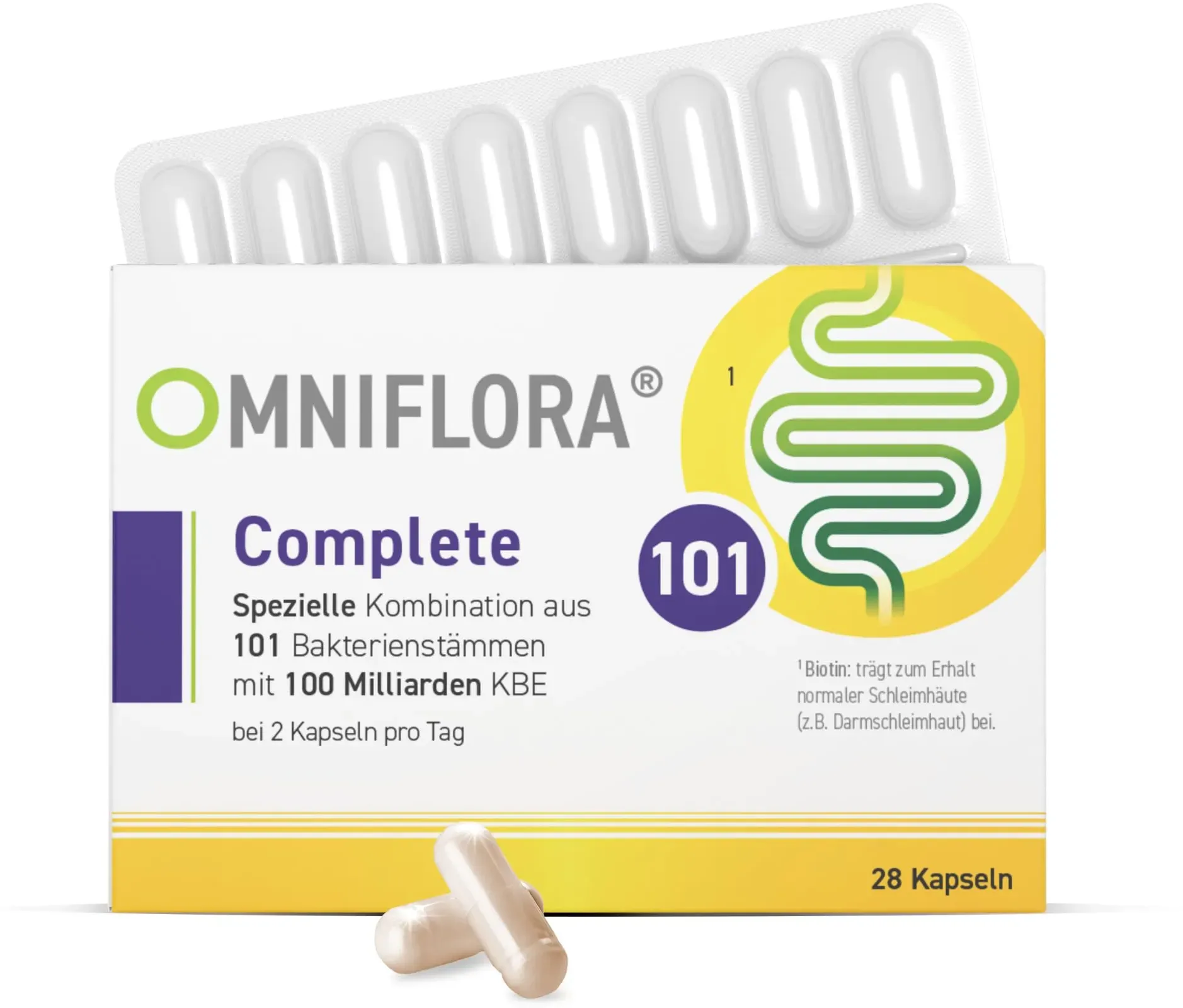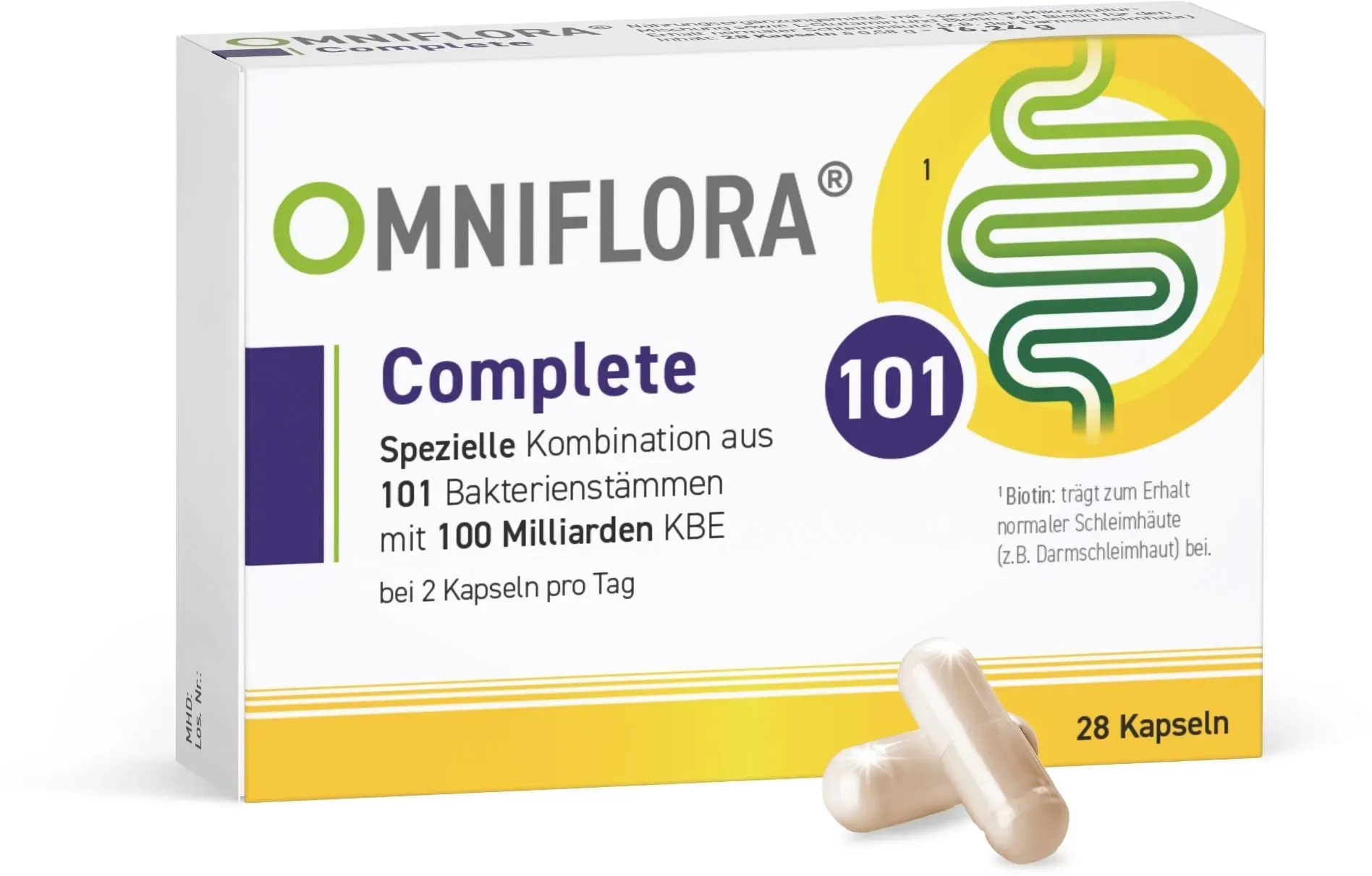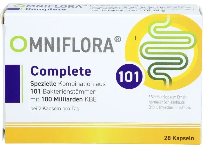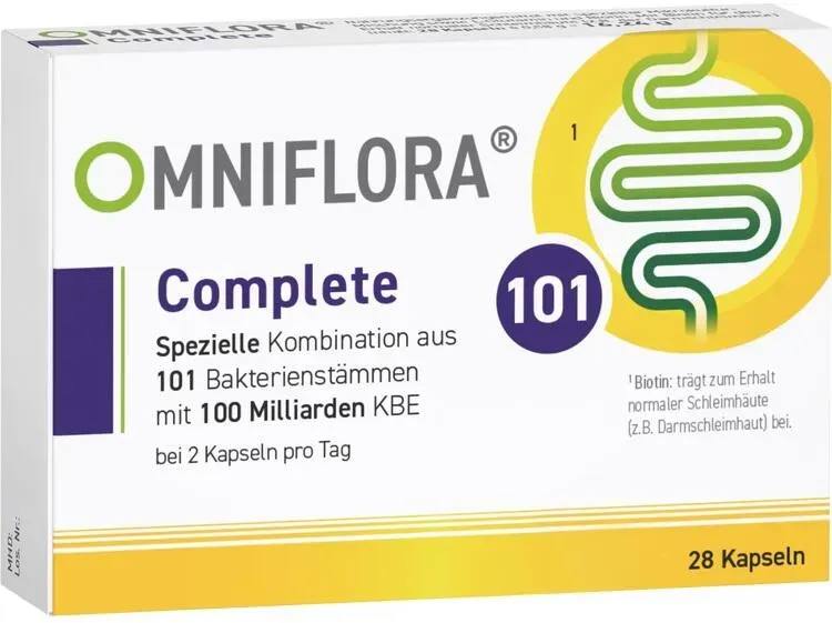 OMNIFLORA - EAN: 4260471895208 - Nahrungsergänzungsmittel sind kein Ersatz für eine ausgewogene und abwechslungsreiche Ernährung und eine gesunde Lebensweise. OMNIFLORA Complete 101 Bakterienstämme hochdos. 100 Mrd. KBE Warum Omniflora Complete? Omniflora Complete setzt neue... - bei shop-apotheke.com - aus Yadore Produktdaten ![]() Omniflora Complete 101 Bakterienstämme 100 Mrd.KBE 28 St Kapseln