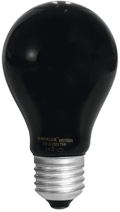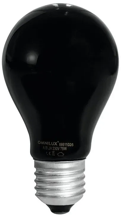 Omnilux - EAN: 4026397198546 - A19 230V/25W E-27 violett. - bei galaxus.de - aus Yadore Produktdaten Diese 75W UV-Lampe ist mit 5,50 Euro eine der günstigsten Optionen für Schwarzlichteffekte. ![]() ![]() OMNILUX A19 230V/75W E-27 UV