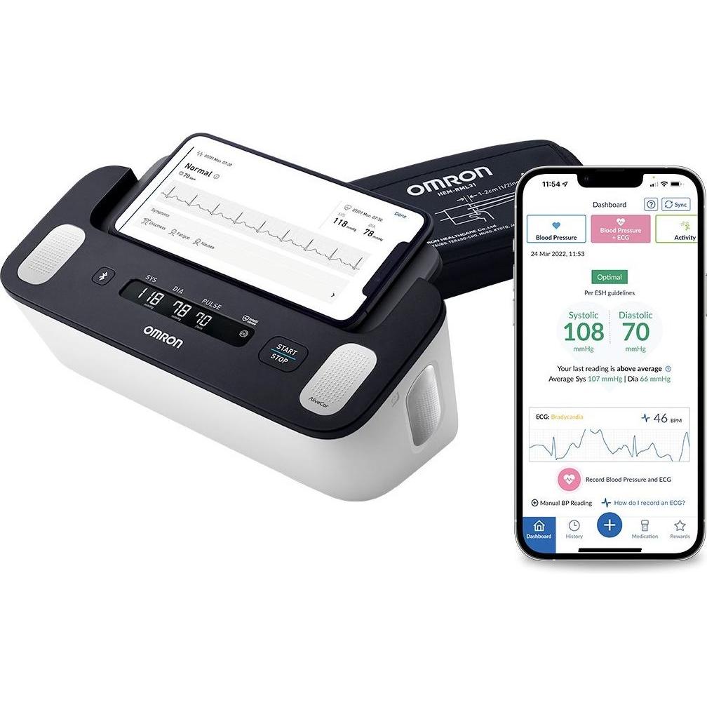lieferbar-in 1-2 Werktagen bei dirOmron Oberarm-Blutdruckmessgerät Complete mit EKG-Funktion, Vorhofflimmern (AFib)-Screening & App, Einfache, genaue und präzise Blutdruckmessungen und EKG zu Hause schwarz