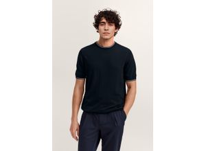 Oberteile Mode Bekleidung - - Mit diesem Strick T-Shirt von bugatti holst du dir ein stilvolles und zugleich bequemes Basic in deinen Kleiderschrank. Der Regular Fit sorgt für eine gerade, lässige Passform, die weder zu eng noch zu weit sitzt und dir den ganzen Tag über ein angenehmes Tragegefühl bietet. Gefertigt aus einem feinen Viskose-Polyamid-Mix fühlt sich das Material besonders weich auf der Haut an, ist atmungsaktiv und verleiht dem Shirt eine edle, leicht glänzende Optik. Der klassische Rundhalsausschnitt unterstreicht das minimalistische Design, während der Pull-on-Stil das Anziehen unkompliziert macht. Durch die Strickstruktur wirkt das Shirt gepflegter als ein normales Jersey-T-Shirt - ideal für den gehobenen Freizeit-Look oder als stilvolle Alternative im Office. Kombiniere es mit Chinos, Jeans oder sogar einem leichten Sakko, wenn du deinen Stil smart, aber entspannt halten möchtest. Dieses T-Shirt ist die perfekte Wahl für Männer, die Wert auf Qualität, Stil und Komfort legen - ganz im bugatti Stil., Material: Materialzusammensetzung: 65% Viskose, 35% Polyamid, Pflegehinweise: Schonwäsche, Optik/Stil: Optik: unifarben, Farbe: Farbbezeichnung: 390-marine, Passform/Schnitt: Kragen: ohne Kragen, Ausschnitt: Rundhals, ärmellänge: Kurzarm, ärmelabschluss: Rippbündchen, Passform: regular fit, Details: Verschluss: ohne Verschluss, Besondere Merkmale: mit Rundhals aus Viskose-Mix - Versandkostenfrei: false - Lieferzeit: 3 Tage - Kragenform: Rundhals-Kragen - Sofort ... Ein weiteres hochwertiges BUGATTI T-Shirt im Regular Fit, das durch seinen Viskose-Polyamid-Mix besonders angenehm zu tragen ist. ![]() T-Shirt BUGATTI 'Regular Fit', Herren, Gr. L, blau (390, marine), 65% Viskose, 35% Polyamid, unifarben, regular fit, Rundhals, Rippbündchen, Shirts T-Shirt, mit Rundhals aus Viskose-Mix
