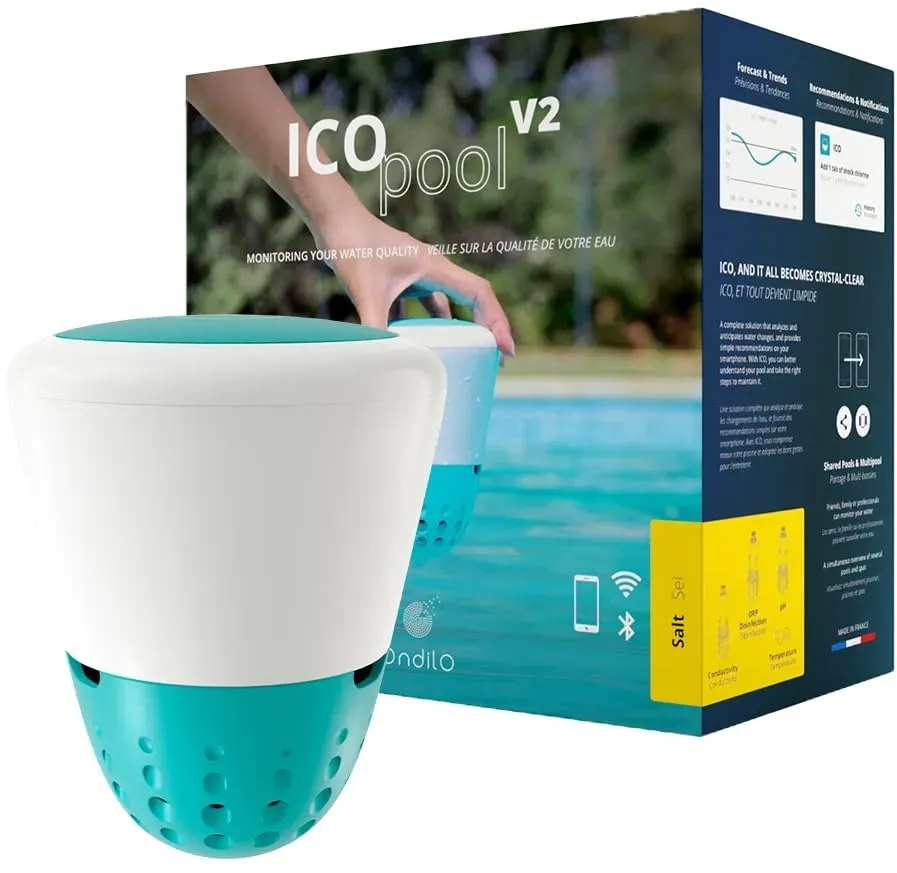 Zustand: Neu - Wassertester Wassertester für Pools - ondilo Ondilo - ICO POOL v2 SALT / SEL ICO POOL v2 CL-BR - EAN: 3701168002598 - Überwachen Sie das Wasser Ihres entfernten Pools: ICO Pool Salz analysiert die Wasserqualität 1 Mal pro Stunde und sendet Ihnen Tipps auf Ihr Smartphone, wenn es nötig ist. ICO Pool empfiehlt Ihnen das richtige Produkt zur richtigen Dosierung und zum richtigen Zeitpunkt! Automatische Messungen: ICO Pool Salz misst jede Stunde die Wassertemperatur, den pH-Wert, den ORP (Redox) und das TDS (Salzgehalt). ICO Pool begleitet Sie mit dem Water Index - Badeindex (farbcodiert für Wasserqualität). PERSONALISIERTE TIPPS: Abhängig von Ihrem Pool (Volumen), der Art der gewählten Behandlung und dem Standort. Verschiedene Empfehlungen (Zugabe von Behandlungsmittel, wöchentliche Wartung, Filterung). Geeignet für Salzpools: Mit seiner Orp-Sonde in Gold ist ICO Pool kompatibel mit Salzbehandlungen (Elektrolyseur) TECHNISCHE MERKMALE: Verbindung mit WLAN und Bluetooth. Langlebiger Lithium-Ionen-Akku und aufladbar über den USB-Anschluss (1 x alle 6 Monate), mit dem mitgelieferten USB-Kabel - Verkäufer: Ondilo im amazon.de Marketplace Dieses Modell ist ein elektronischer Wasseranalysator für salzbehandelte Schwimmbäder, der stündliche Messungen und Smartphone-Beratung bietet. ![]() ![]() Ondilo ICO Pool V2 Salt Elektronischer Wasseranalysator für salzbehandelte Schwimmbäder Stündliche Messungen von pH, ORP, TDS und Wassertemperatur Beratung auf Ihrem Smartphone
