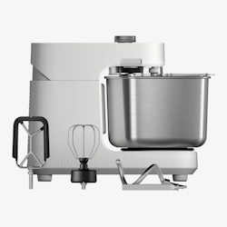 Ooni - EAN: 5060967395316 - Ooni Halo Pro Spiralmixer 7 l Marke: Ooni Kategorie: Spiralmixer Kompakt, leistungsstark und modernes Design. Machen Sie zu Hause besseren Teig mit dem revolutionären Spiralmixer von Ooni. Der Ooni Halo Pro bringt die Spiralmixtechnologie professioneller Bäckereien und Pizzerien direkt auf Ihre Küchenarbeitsplatte. Die professionellen Bäcker und Pizzabäcker, mit denen Ooni bei der Entwicklung seiner öfen zusammengearbeitet hat, verwenden keine gewöhnlichen Planetenmixer: Sie verlassen sich seit Jahren auf professionelle Spiralmixer, denn besserer Teig bedeutet besseres Brot und bessere Pizza. Mit dem Halo Pro macht Ooni diesen Standard für jeden Hobbykoch zugänglich. Professionelle Spiralmixtechnologie Die Spiralmixertechnologie mit rotierender Schüssel, spiralförmigem Knethaken und zum Patent angemeldetem, abnehmbarem Teigteiler entwickelt stärkere Glutennetzwerke für besseren Teig und letztendlich schmackhafteres Brot und Pizza. Die meisten professionellen Spiralmixer haben eine feste Schüssel und einen nicht abnehmbaren Teigteiler in der Mitte, was ihre Verwendbarkeit einschränkt. Der Ooni Halo Pro hingegen ermöglicht Ihnen dank der dreh- und abnehmbaren Schüssel, des kippbaren Kopfes und der abnehmbaren Spaltstange einen einfachen Zubehörwechsel: vom Spiralhaken über den Schneebesen bis hin zum flexiblen Rührbesen, der Ihnen für jeden Teig und jede Zubereitung eine Welt voller Möglichkeiten eröffnet. Präzisionssteuerung Um das Mixen optimal ... ![]() Ooni Halo Pro Spiralkneter - Polar White, Küchenmaschine