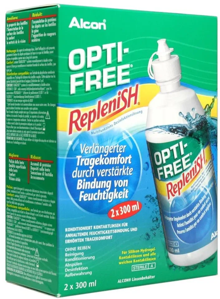 43.85 /l - Kategorie: Zubehör für Kontaktlinsen - Alcon - GTIN:4004999156003 - PZN:00679003 - OPTI-FREE RepleniSH Multifunktions-Desinf.Lsg. 2X300 ml - 26,31 Euro bei Preisapo - gefunden von billiger.de ![]() ![]() Opti-Free Replenish - - 2x eBay 300ml / 1x Behälter