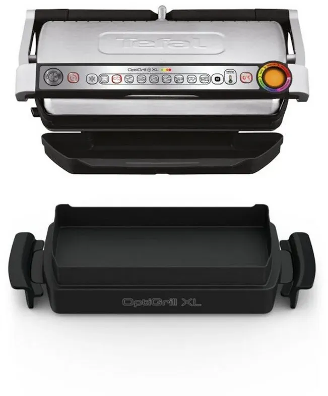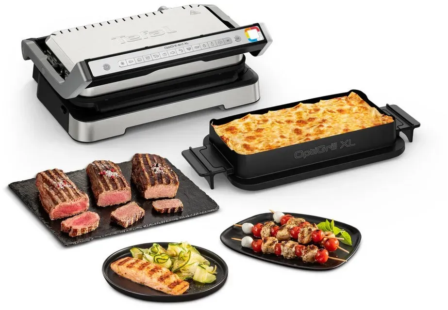 Verfügbarkeit: Auf Lager - Kategorie: Elektrogrills - Tefal - GTIN:3168430306097 - Elektrischer Kontaktgrill mit intelligenter Technologie: misst Dicke und Anzahl der Zutaten und passt Garzeit/Grillzyklus vollautomatisch an, 16 voreingestellte Programme und manueller Modus, Zusatzmodi für gefrorene Zutaten und Grillboost Groß und stark: 2,200 Watt Leistung auf einer 800cm2 großen XL-Grillfläche sorgen für echten Grillspaß und schnelle, knusprig-saftige Steaks und weitere Grillergebnisse für bis zu 8 Personen gleichzeitig Einfache Bedienung: Wandern Sie intuitiv durch das Menü; der intelligente Grillassistent führt Sie durch die Programme und den Grillvorgang, Der Countdown und ein akkustisches Signal informieren Sie, wann Ihr perfektes Grillergebnis erreicht ist Einfache Reinigung: Die antihaftbeschichteten Grillplatten und Saftauffangschale sind herausnehmbar und spülmaschinengeeignet Flexibel einsetzbar: Der Tischgrill lässt sich indoor und outdoor verwenden, Dank beigelegtem Rezeptbuch und weiterer Auswahl in der kostenlosen App haben Sie unendliche Grillmöglichkeiten - 220,00 Euro bei Amazon Marketplace Kitchen - gefunden von billiger.de Der OptiGrill 2in1 XL ist besonders empfehlenswert, da er neben der Grillfunktion auch eine Backofenfunktion bietet. ![]() ![]() Tefal OptiGrill 2in1 XL Kontaktgrill, Aufklappbar, Tischgrill, 12 Programme, Garstufenanzeige, Abnehmbare XL-Platten, Elektrogrill, GC782D10
