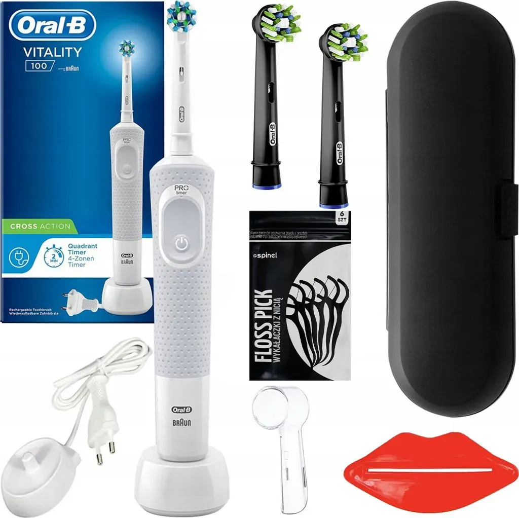 Kategorie: Elektrische Zahnbürsten - Oral-B - GTIN:5905701117062 - ORAL-B VITALITY 3D WHITE ELECTRIC TOOL + ZubehörMit 7600 oszillierenden Bewegungen pro Minute sorgt die Oral-B 3D White Zahnbürste für eine hervorragende Aufhellung, Reinigung und Plaqueentfernung. Der Bürstenkopf passt sich jedem Zahn an, entfernt Plaque und entfernt sanft Flecken.Die Zahnbürste verwendet eine 2D-Technologie, die auf zwei Arten von Bewegungen basiert: oszillierend und rotierend, wodurch mehr Plaque entfernt wird als mit einer herkömmlichen Handzahnbürste.Eine Vielzahl von Oral-B Vitality Zahnbürstenaufsätzen sind mit der Oral-B Vitality Zahnbürste kompatibel, so dass Sie jedes Mal das gewünschte Reinigungsergebnis erzielen können.2x Extra Oral-B Cross Action Original-ZahnbürstenaufsatzCrossAction ist einer der besten Ersatzaufsätze für elektrische Zahnbürsten von Oral-B. Die abgewinkelten Borsten entfernen bis zu 100 % mehr Plaque im Vergleich zu einer normalen Handzahnbürste.Die Form der Oral-B CrossAction Zahnbürstenspitze mit speziell entwickelten Fasern ermöglicht es ihr, jeden Zahn gründlich zu umschließen. Diese einzigartigen Borsten dringen tief in die Zahnzwischenräume ein, um Plaque zu entfernen und den gesamten Mundraum sauberer zu machen als bei der Verwendung einer herkömmlichen Handzahnbürste. Der Aufsatz passt auf alle oszillierend-rotierenden Zahnbürsten.ReiseetuiSie möchten Ihre Zahnbürste auf eine Reise mitnehmen? Das ist jetzt kein Problem mehr.Es schützt Ihre Zahnbürste ... Eine weitere gute Option im mittleren Preissegment für eine elektrische Zahnbürste mit 3D White Fokus. ![]() ![]()