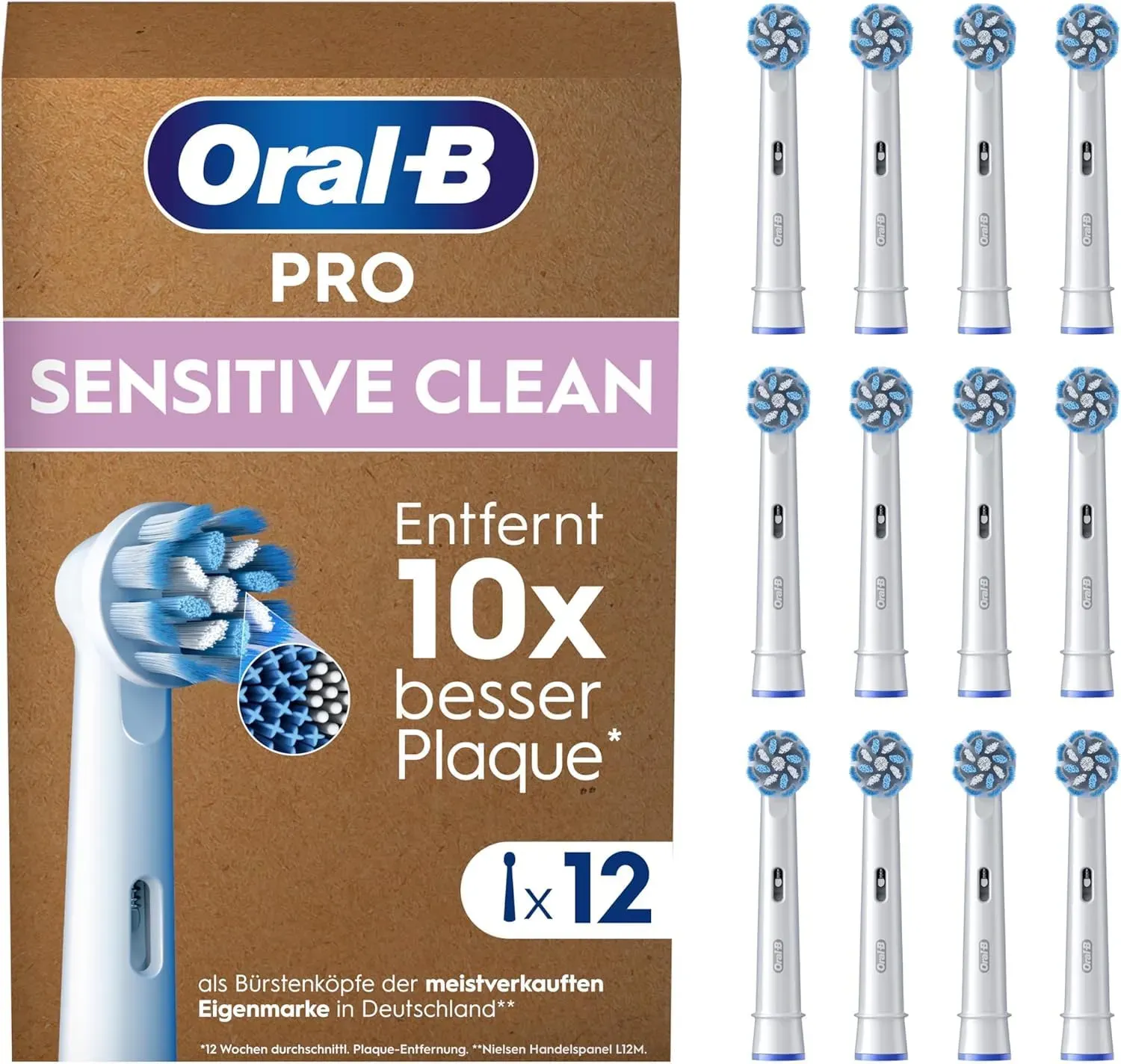 14 Händlerangebote bei billiger.de - Kategorie: Zahnpflegeartikel - Oral-B - EINFACHE LIEFERUNG: 12 Oral-B Pro Sensitive Clean Aufsteckbürsten in unbedruckter KARTONVERPACKUNG FüR DEN BRIEFKASTEN (aus hygienischen Gründen einzeln verpackt) Klinisch bestätigt: ENTFERNT 10X BESSER PLAQUE als Bürstenköpfe der MEISTVERKAUFTEN EIGENMARKE in Deutschland (12 Wochen durchschnittl. Plaqueentfernung, Nielsen Handelspanel L12M) ORIGINAL BüRSTENKöPFE von Oral-B mit innovativen X-förmigen Borsten: Reinigen die Stellen, die normale Borsten nicht erreichen können - für eine OPTIMALE REINIGUNGSLEISTUNG Oral-B Pro Sensitive Clean bietet eine hohe Dichte an EXTRA-WEICHEN BORSTEN für eine besonders SANFTE ZAHNREINIGUNG Entfernt bis zu 100 Prozent mehr bakterielle Plaque als eine Handzahnbürste - für SAUBERERE ZäHNE UND GESüNDERES ZAHNFLEISCH DESIGNED & MADE IN GERMANY - rte Passform mit allen wiederaufladbaren elektrischen Zahnbürsten von Oral-B, außer Pulsonic & iO Zahnärzte empfehlen: Die Aufsteckbürste ALLE 3 MONATE WECHSELN für 100 Prozent Putzkraft Oral-B ist die von Zahnärzten weltweit AM HäUFIGSTEN VERWENDETE MARKE mit klinisch nachgewiesenen Ergebnissen - GTIN:8006540859933 Mediamarkt .de ORAL-B Pro CrossAction 6 Stück Aufsteckbürsten
