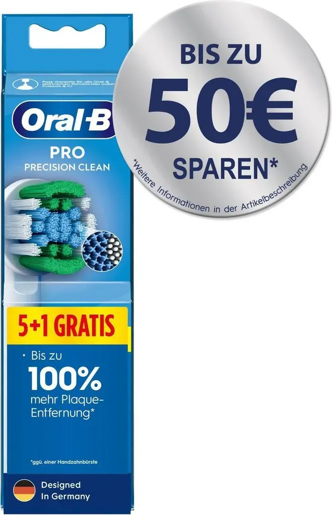 13 Händlerangebote bei billiger.de - Kategorie: Zahnpflegeartikel - Oral-B - Der Oral-B CrossAction Bürstenkopf verfügt über perfekt angewinkelte Borsten, die bis zu 100% mehr Plaque entfernen als eine Handzahnbürste. Die innovative CleanMaximiser-Technologie färbt grüne Borsten gelb und signalisiert so den optimalen Zeitpunkt zum Wechseln für die beste Reinigung. 100% Pass- für alle Oral-B Braun elektrische Zahnbürsten, außer Pulsonic & iO. Designed & made in Germany. Die Produktvorteile der Oral-B Aufsteckbürsten CrossAction Schwarz CleanMaximizer 3er:Oral-B CrossAction Black Edition Aufsteckbürsten mit CleanMaximiser-Borsten für überlegene Reinigung, 3 StückOral-B CrossAction Black Edition Aufsteckbürsten, 3 StückDer Oral-B CrossAction Bürstenkopf verfügt über perfekt angewinkelte Borsten, die bis zu 100% mehr Plaque entfernen als eine Handzahnbürste. Die innovative CleanMaximiser-Technologie färbt grüne Borsten gelb und signalisiert so den optimalen Zeitpunkt zum Wechseln für die beste Reinigung. 100% Pass- für alle Oral-B Braun elektrische Zahnbürsten, außer Pulsonic & iO. Designed & made in Germany.Die CleanMaximiser-Technologie färbt grüne Borsten gelb und signalisiert so den optimalen Zeitpunkt zum Wechseln für die beste ReinigungPro-Technologie: Perfekt angewinkelte Borsten für überlegene ReinigungFür die beste Reinigung empfehlen Zahnärzte die Aufsteckbürste alle 3 Monate zu wechseln100% Pass- für alle Oral-B Braun elektrische Zahnbürsten, außer Pulsonic & iO - ... ![]() ![]() Oral-B Pro Precision Clean Aufsteckbürsten 5 + 1 Gratis